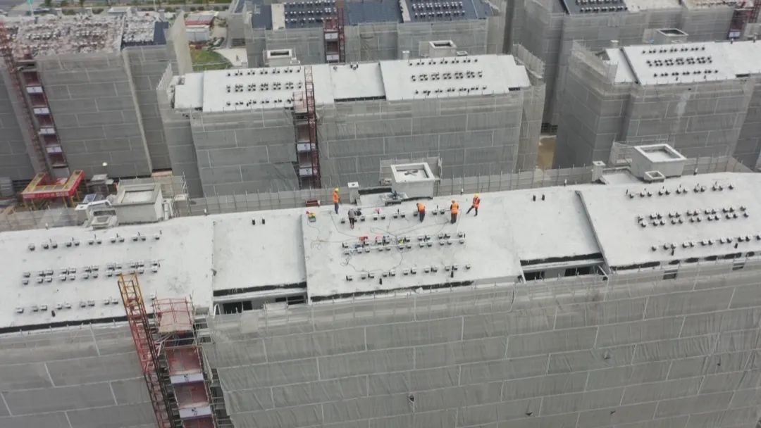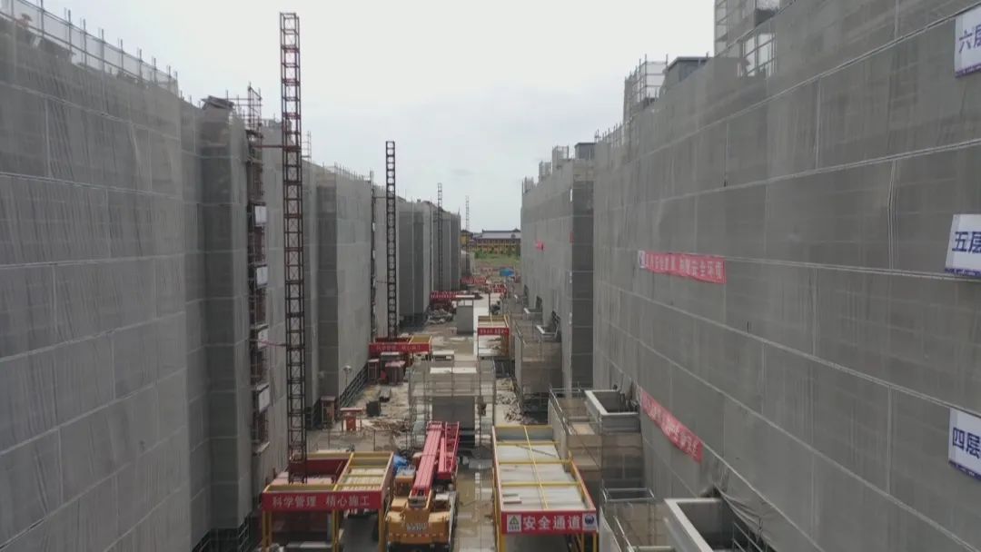 记者在施工现场看到,一幢幢多层住宅已初具雏形,工人们正在对室外的墙体进行甩浆、粉刷,进行粗装饰并安装门窗,现场一片热火朝天的建设场景。