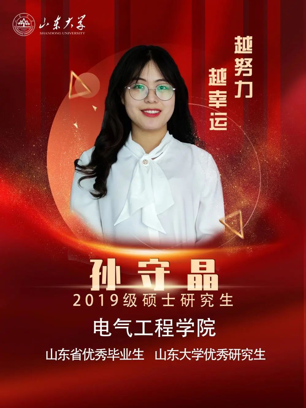 孙守晶,电气工程学院2019级电气工程专业硕士研究生,师从丛伟副教授。研究方向为智能配电网分布式供电恢复。攻读硕士研究生期间,以第一作者发表EI核心期刊一篇,EI会议两篇,合作论文两篇,撰写专利1项,参与国家自然科学基金课题。曾获山东省优秀毕业生、山东大学优秀研究生、山东大学优秀研究生干部奖、山东大学优秀共青团员、山东大学社会工作先进个人、山东大学研究生一等学业奖学金、四方继保奖学金等荣誉。
