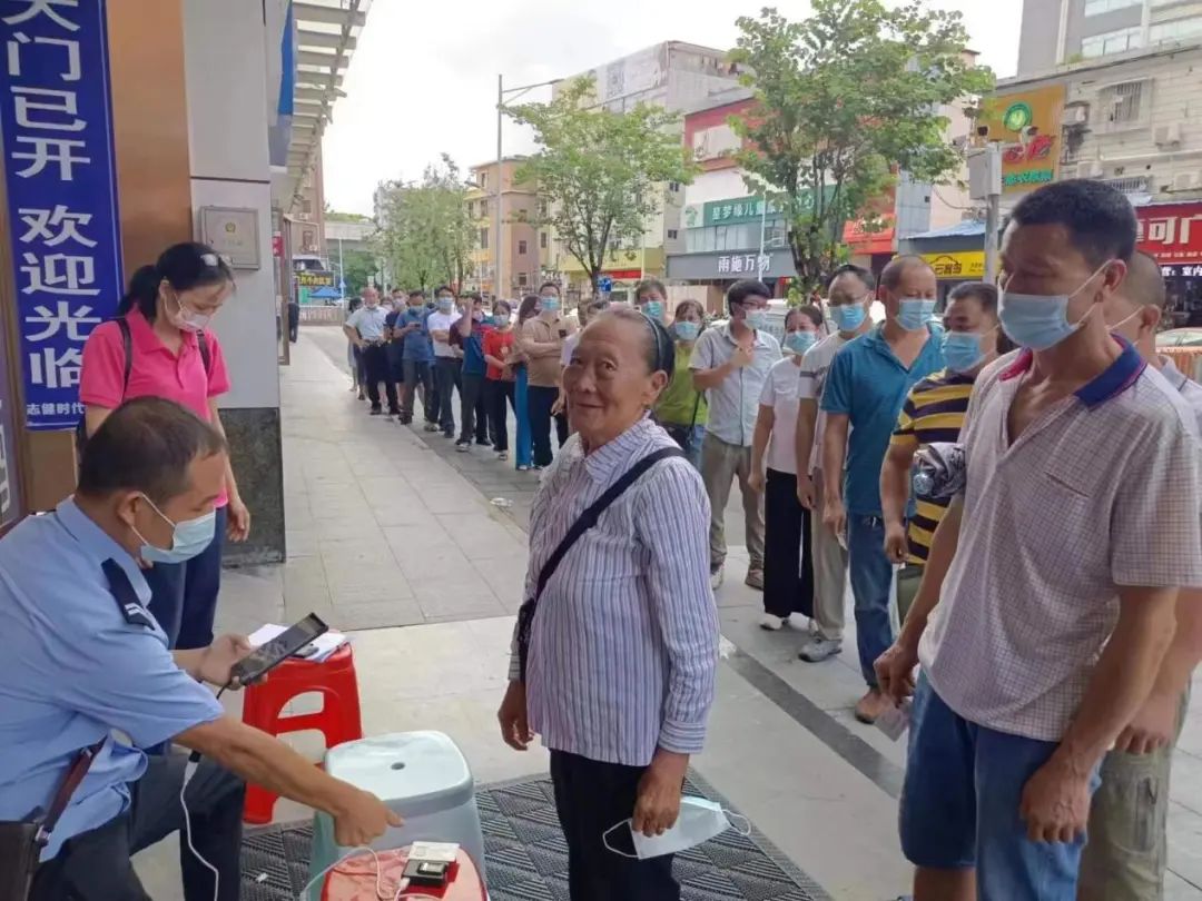 渌口分局人境大队牵头组织、各派出所抽调精干警力成立指纹补采小组,兵分六路赴广东省开展指纹补采工作。此次民警携带移动采集设备,通过打电话、加微信、建立微信群、设立临时采集点等方式对至今仍未补采指纹信息的株洲籍居民跨省异地提供补采指纹信息服务。在广州补采点,工作人员尚未拿出补采设备,闻讯而来的办事群众便排起了较长的队伍,“真没想到我们株洲公安这么周到,千里迢迢来给我们录指纹,把服务送到了广州的家门口,见到你们就像见到了亲人一样,很感动!”李女士感叹道。此次赴广东省指纹补采工作从8月23日开始至8月29日共计7天,涉及广东省14个市,计划采集指纹1000余人。