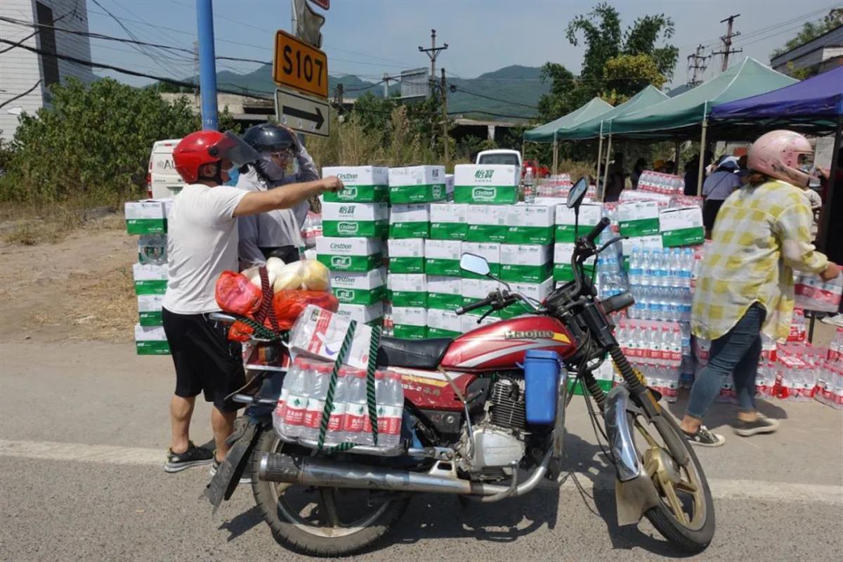 另一名骑摩托的志愿者舒先生告诉记者,22日上午,他就到了北碚区山火现场一个物资点支援,一直到23日晚上才撤退。他运送了矿泉水、工具和手套口罩等等,甚至还会载志愿者上山。有时,他需要背着背篓徒步一段距离才能把物资送达。