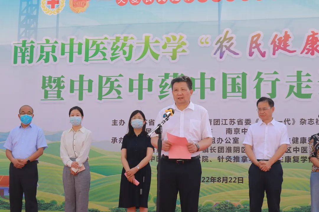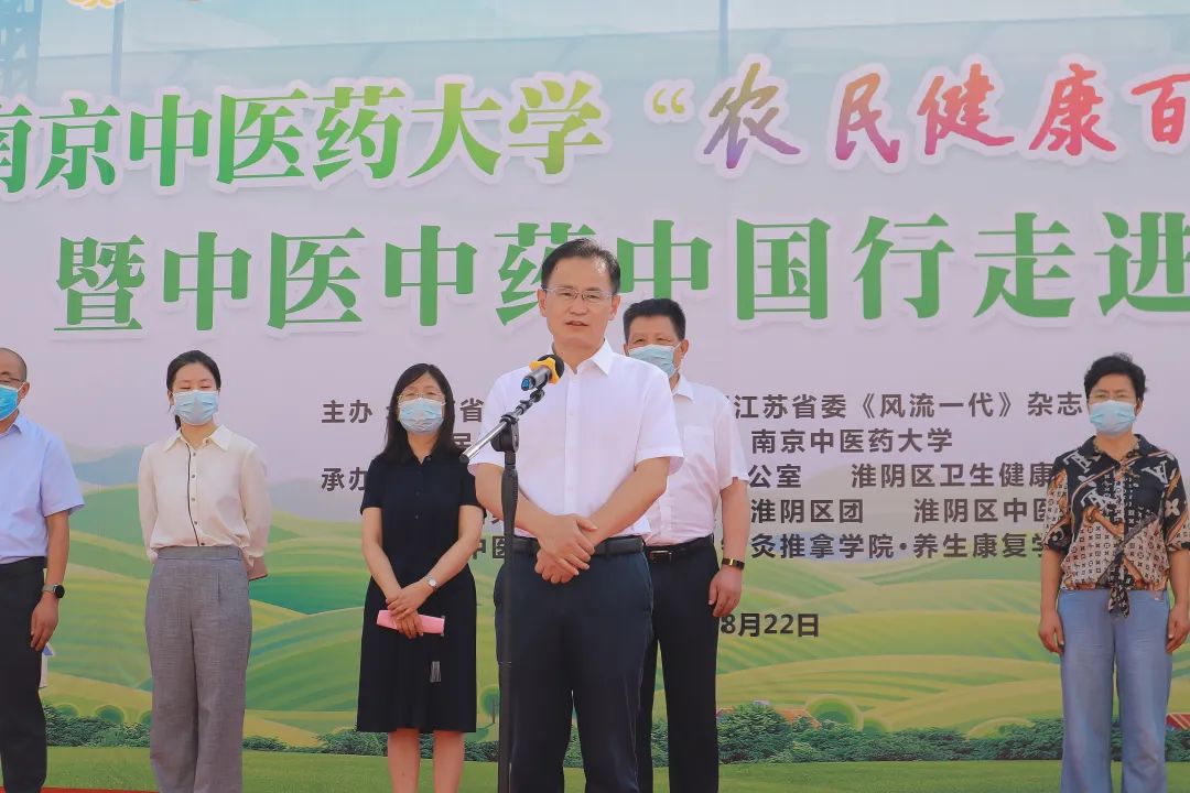南京中医药大学党委常委、宣传部部长刘晓在讲话中表示,南京中医药大学作为国家双一流建设高校、江苏省高水平大学始终将“健康中国”战略作为学校人才培养、科学研究、服务社会与文化传承的路径引领。他希望暑期返乡青年志愿者们深刻感悟淮阴大地孕育的伟大奋斗精神,做中医药文化使者,做淮阴形象的代言人,“用脚步丈量祖国大地,用眼睛发现中国精神,用内心感应时代脉搏,用耳朵倾听时代呼声”,立大志、明大德、成大才、担大任,为“健康中国”建设贡献青春力量。