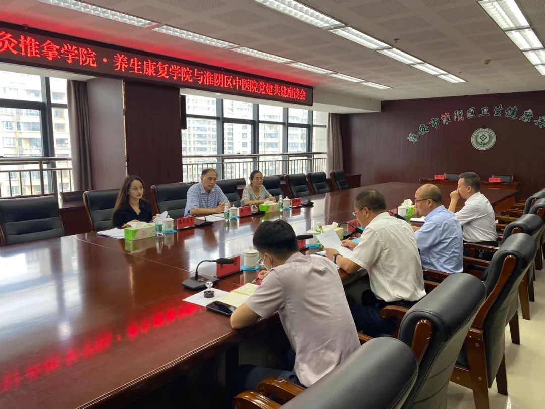 当天,南京中医药大学领导与部分专家与淮阴区组织部人才办、江苏省第十五批科技镇长团淮阴团就科技服务、人才引进等校地合作项目进行洽谈。在淮阴区卫健委,南京中医药大学针灸推拿学院·养生康复学院党委与淮阴区中医院党支部开展了结对共建仪式,双方将充分利用南京中医药大学及其附属医院优质医疗资源开展“党建+医疗服务”共建模式,支持淮阴区“中医专病专科”名医工作室建设。在淮阴区中医院,南京中医药大学药学院党委与淮阴区中医院、淮阴区徐溜镇分别就中医药文化园区建设、中药材种植等方面进行洽谈,积极发挥学校学科特色和科技资源优势开展“党建+乡村振兴”共建模式,通过帮助当地引进适宜中药材种植,优化农业产业结构,促进地方经济发展。