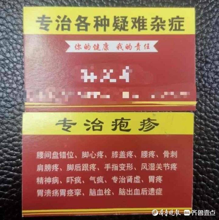 王先生表示,几年前他得了脑血栓,腿脚落下了病根,因此行动有些不便,年龄增大后,老伴照顾他也越来越吃力。前几天,老伴在村子里遇到了这位“神医”正在发名片,自称什么病只要“捏”几下就好,于是老伴便把“神医”请到家中问诊。