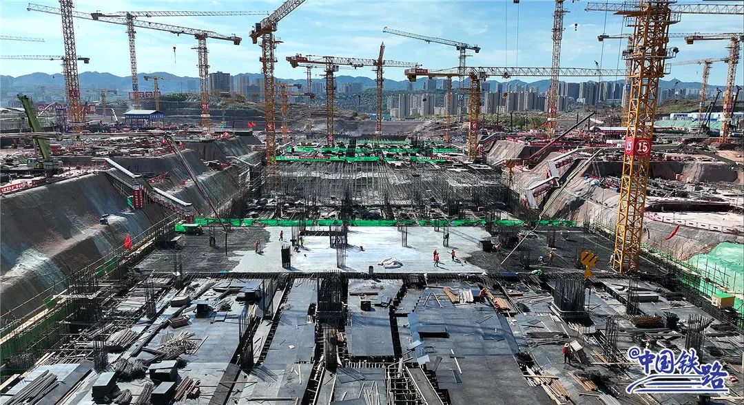 作为重庆新建最大“四网”融合综合交通枢纽,重庆东站集“站城融合、城轨融合、景城融合”于一体,充分利用重庆山城特殊地貌,打造“桥建合一”立体布局,站房、城市轨道交通、公交、长途、出租等均可实现枢纽内部“零”换乘,枢纽周边规划商业、餐饮、休闲、文化、娱乐等多种功能,形成统一开放的城市公共空间。目前,重庆东站站房1标段率先完成首段地铁主体结构封顶,剩余工程正按照节点有序推进。