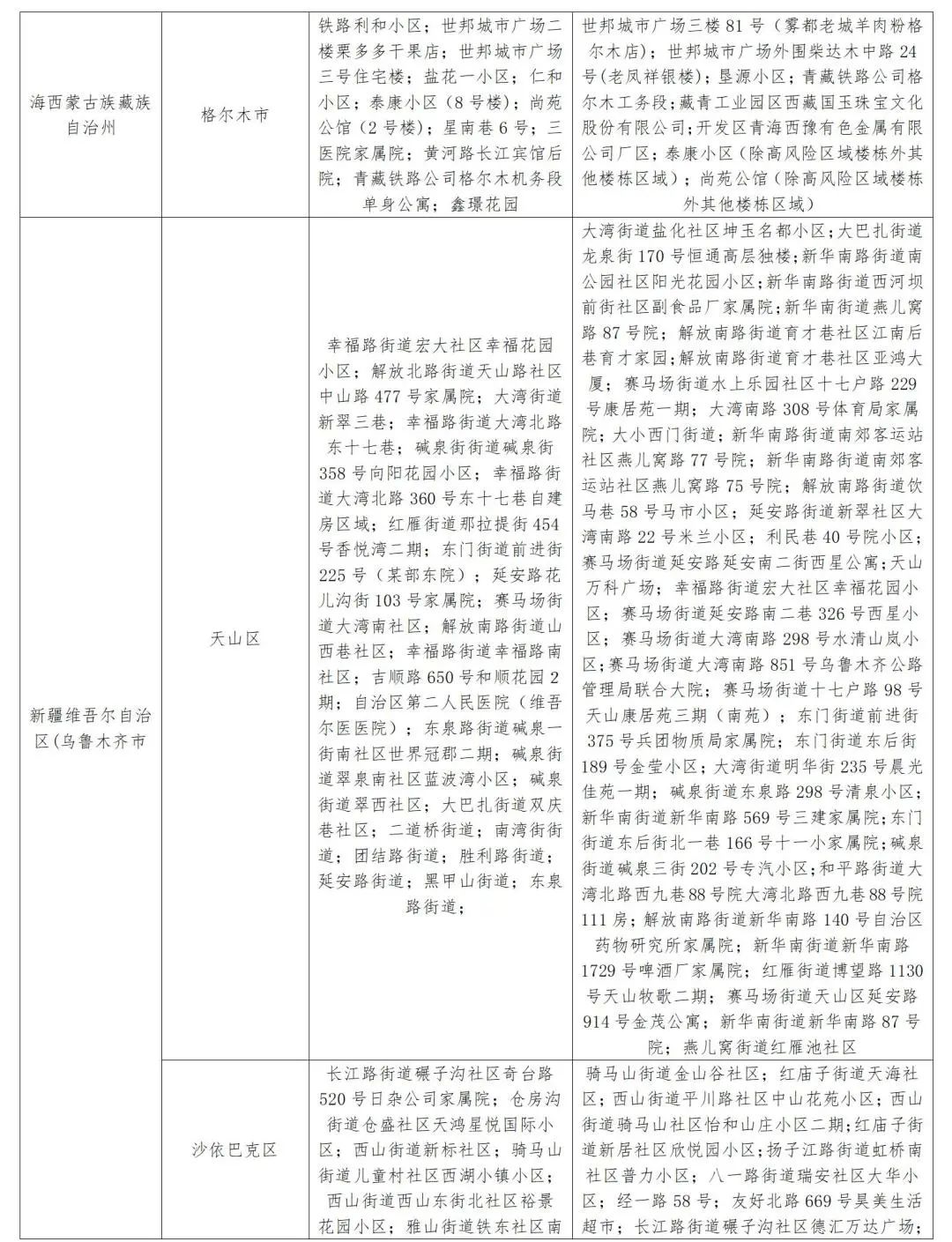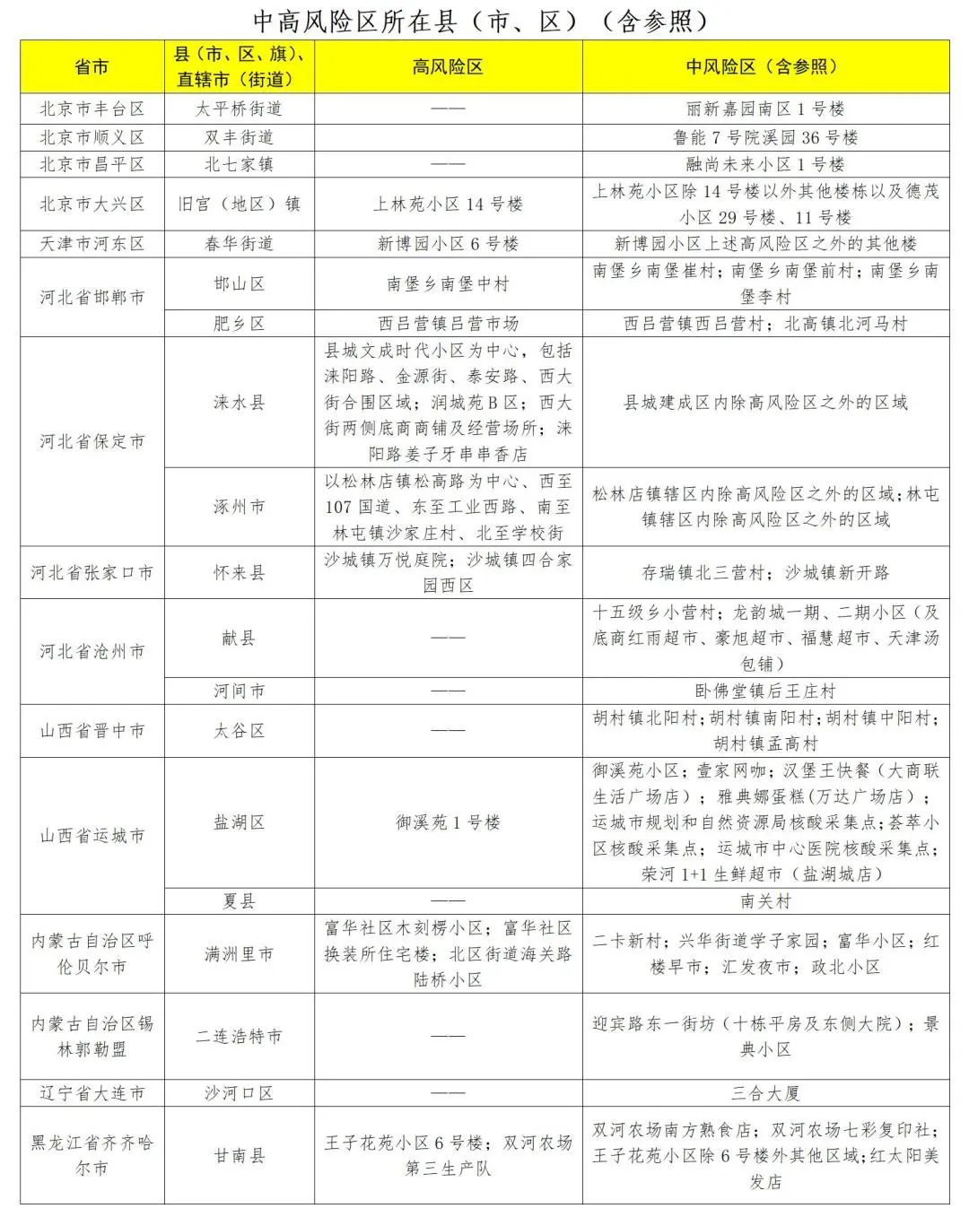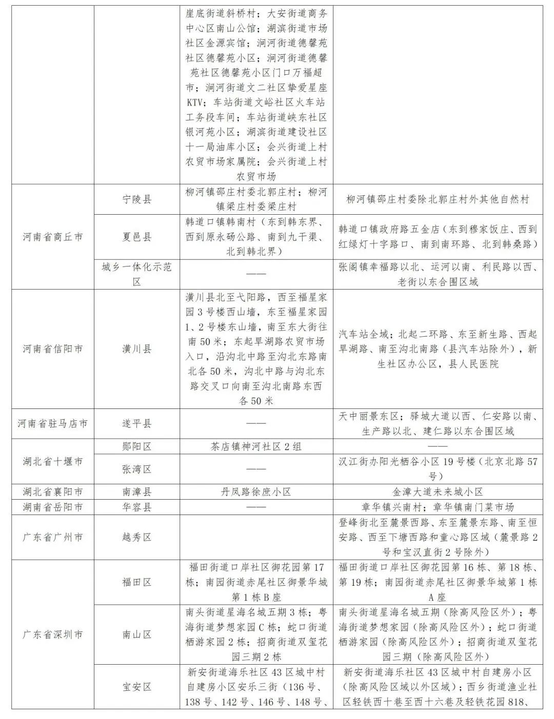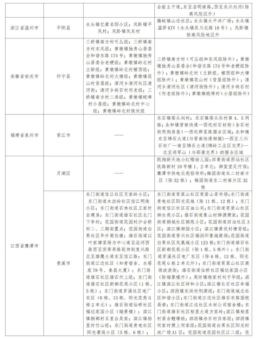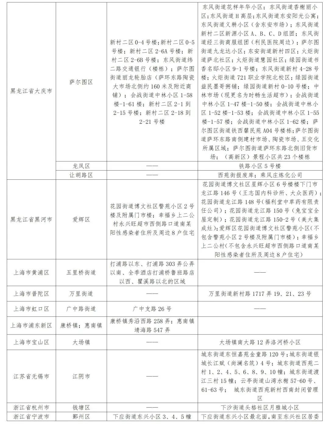 备注:已公布的中高风险区所在县(市、区),不再逐一列举轨迹涉及的具体地点。