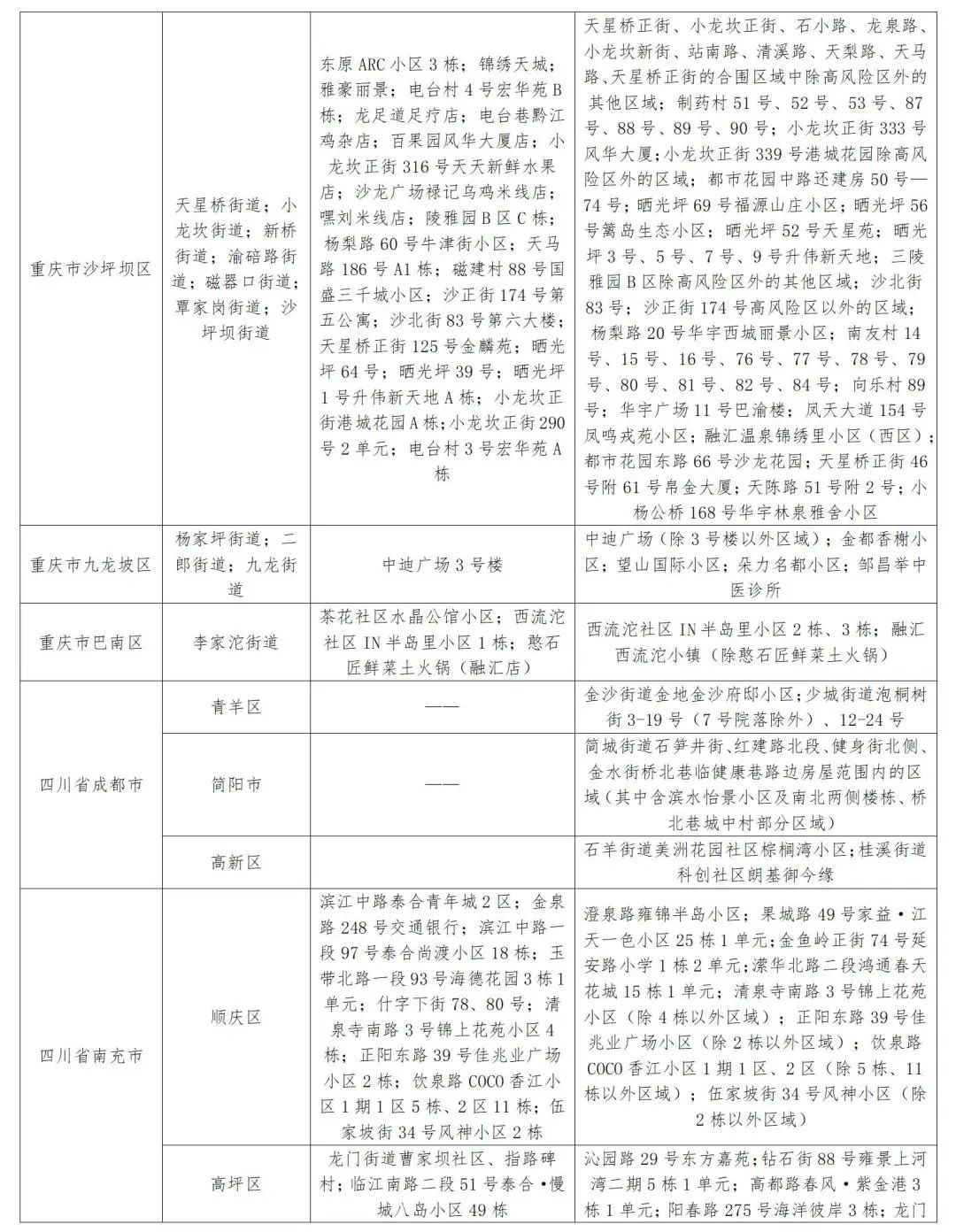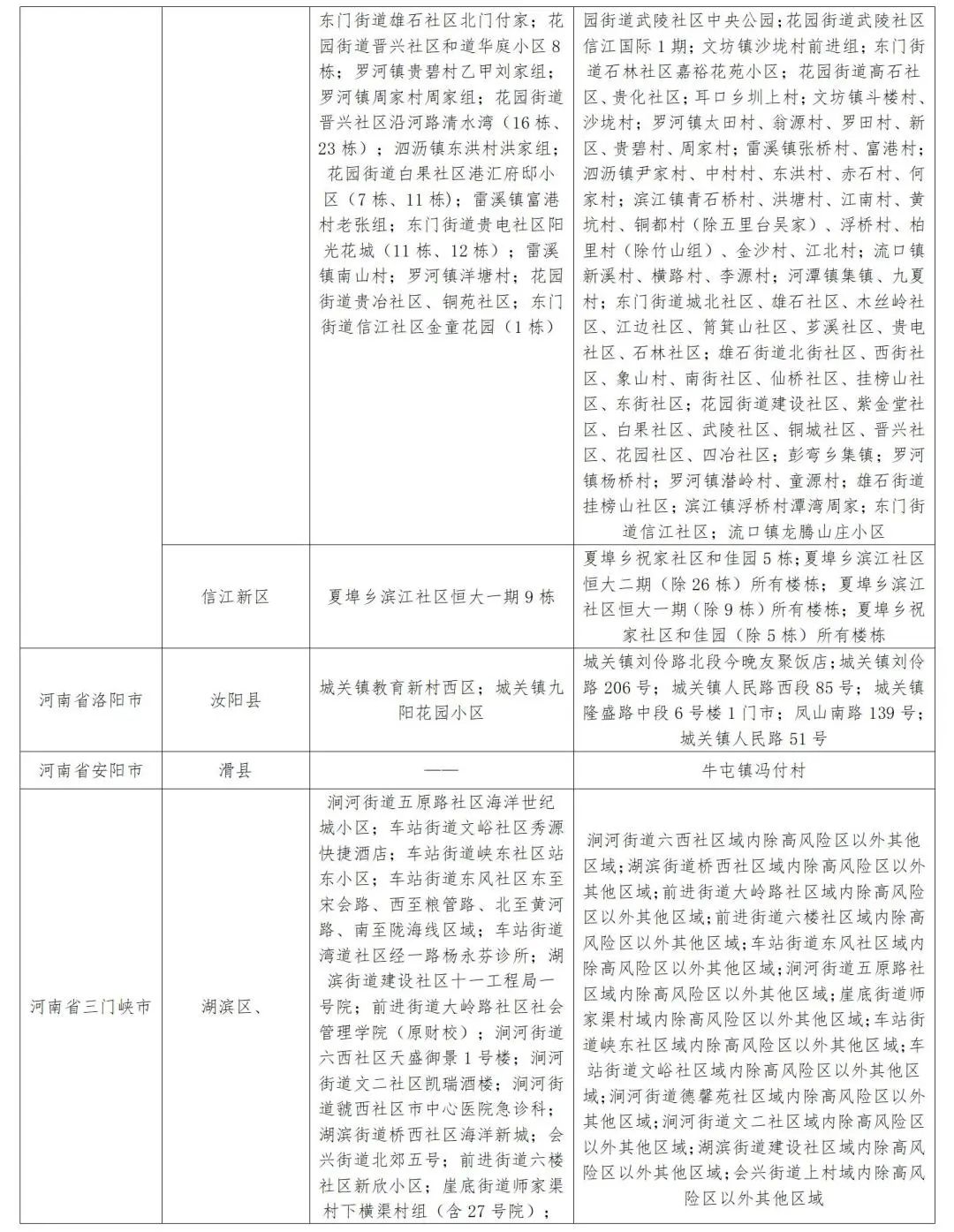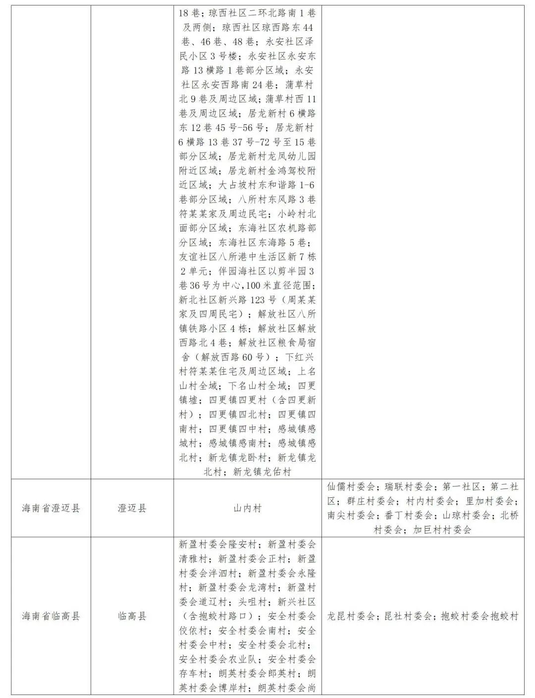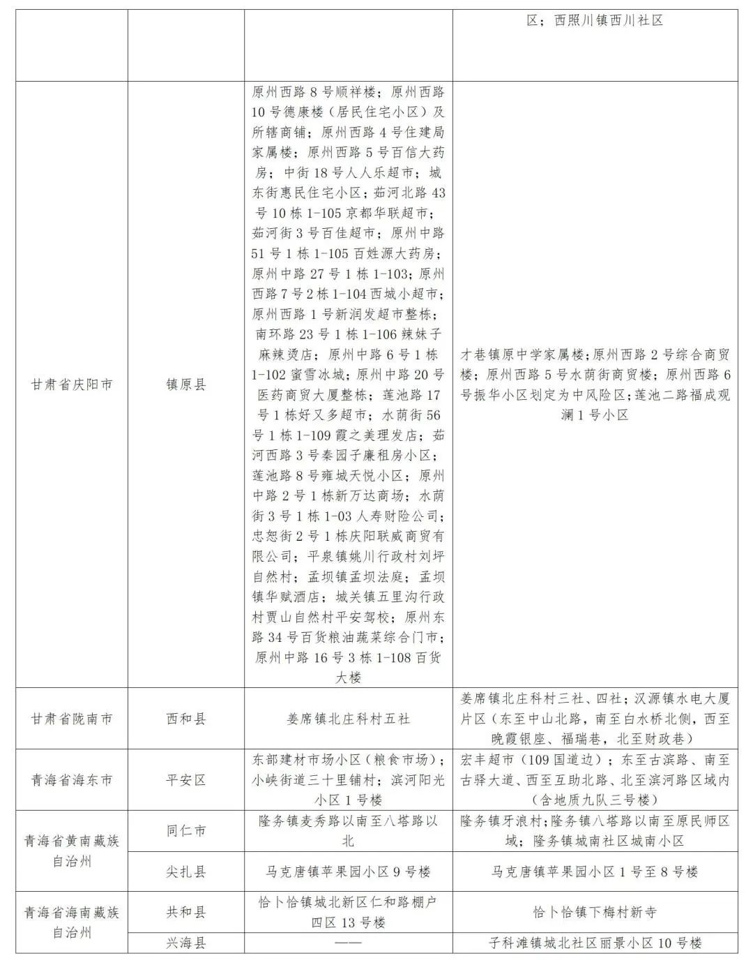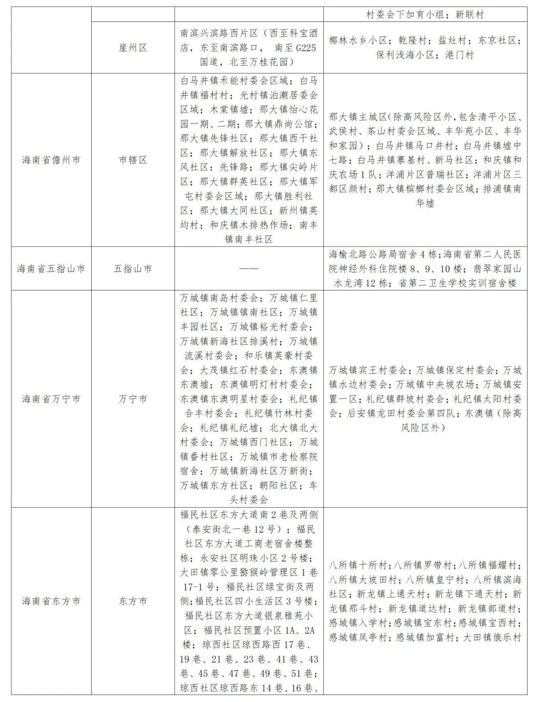 备注:已公布的中高风险区所在县(市、区),不再逐一列举轨迹涉及的具体地点。