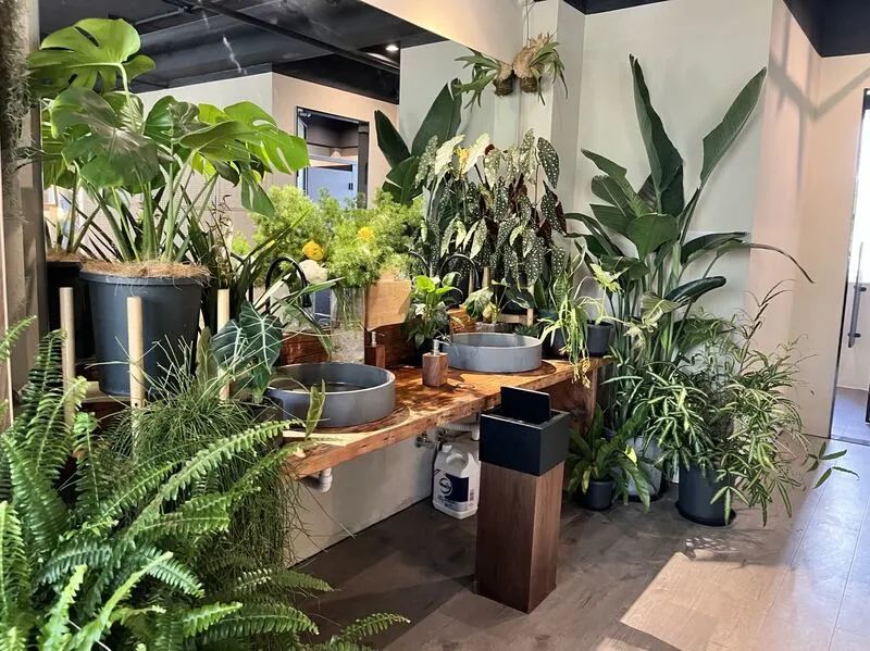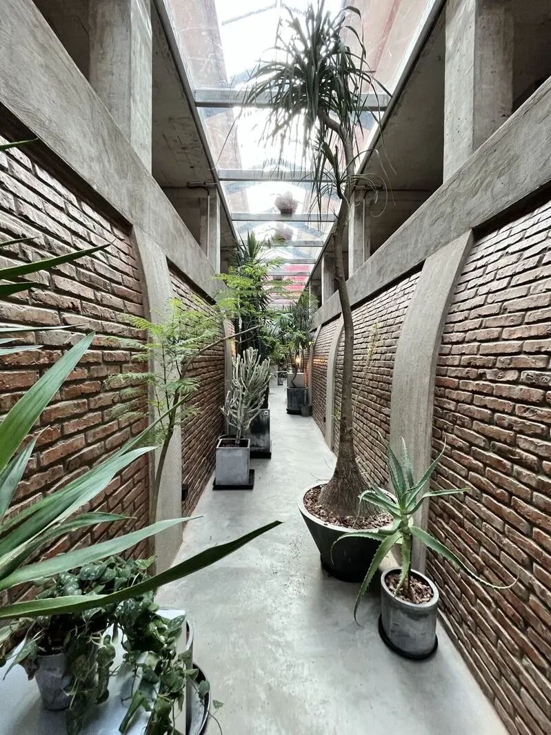 店如其名。事实上,不论在何处,一尺花园始终坚持打造与环境相适应的室内外花园景观。美兰湖店,堪称镇店之宝的大株龙舌兰和鸭掌木给空间带来了异域风情;嘉定南园店,天井处的“荒芜花园”充满野趣,根据季节变换种植的花卉,让人们在不同时节前去,能够欣赏到不一样的风景;老港红窑店,中庭重新设计的植物长廊,让阳光透过顶部玻璃照射进来,绿荫配红砖,增添了生命的气息;就连每家店的洗手台周围,也别具匠心地摆满了植物,成为打卡一景…