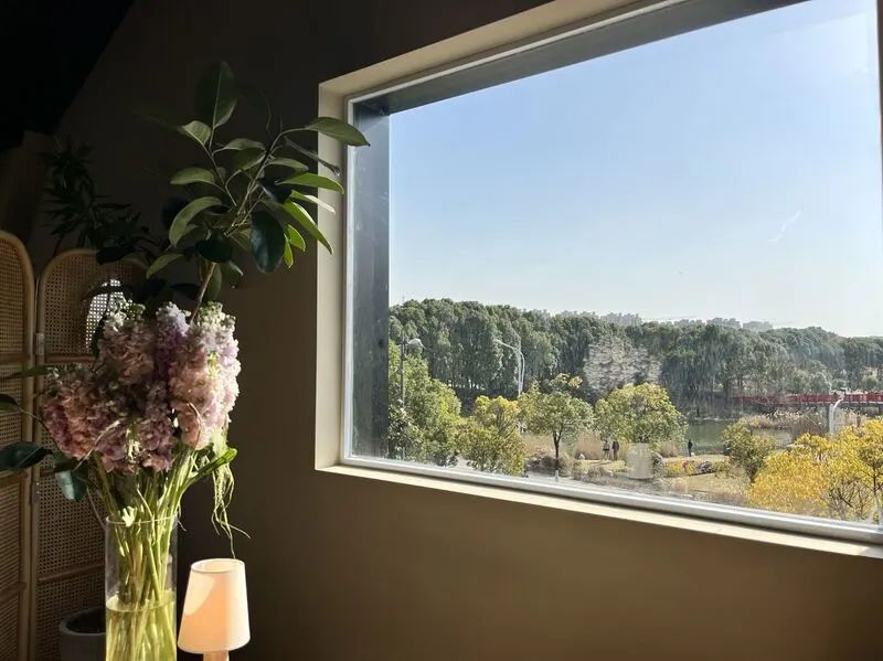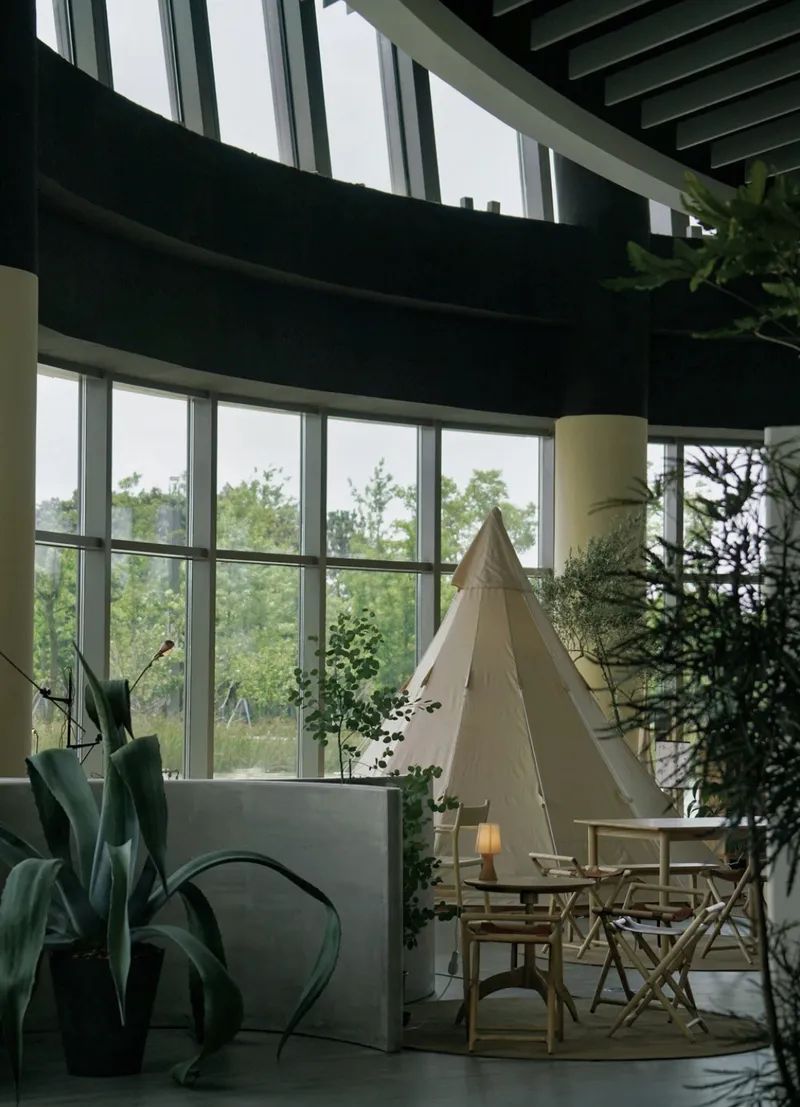 遇上刮风下雨也不用担心,池塘边的“玻璃盒子”也能坐。走进去之后,里面也有绿植环绕,还能同时欣赏户外景致,营造出一番别样的就餐体验。