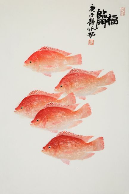 走进李老师的工作室,仿佛是进了一家水族馆:认识的、不认识的,各式各色的鱼儿畅游在三尺熟宣上,那种蓬勃的生命力直接诠释了什么叫做“跃然纸上”。这也让记者忍不住怀疑,莫非发明这个词的古人也见识过鱼拓这种工艺?