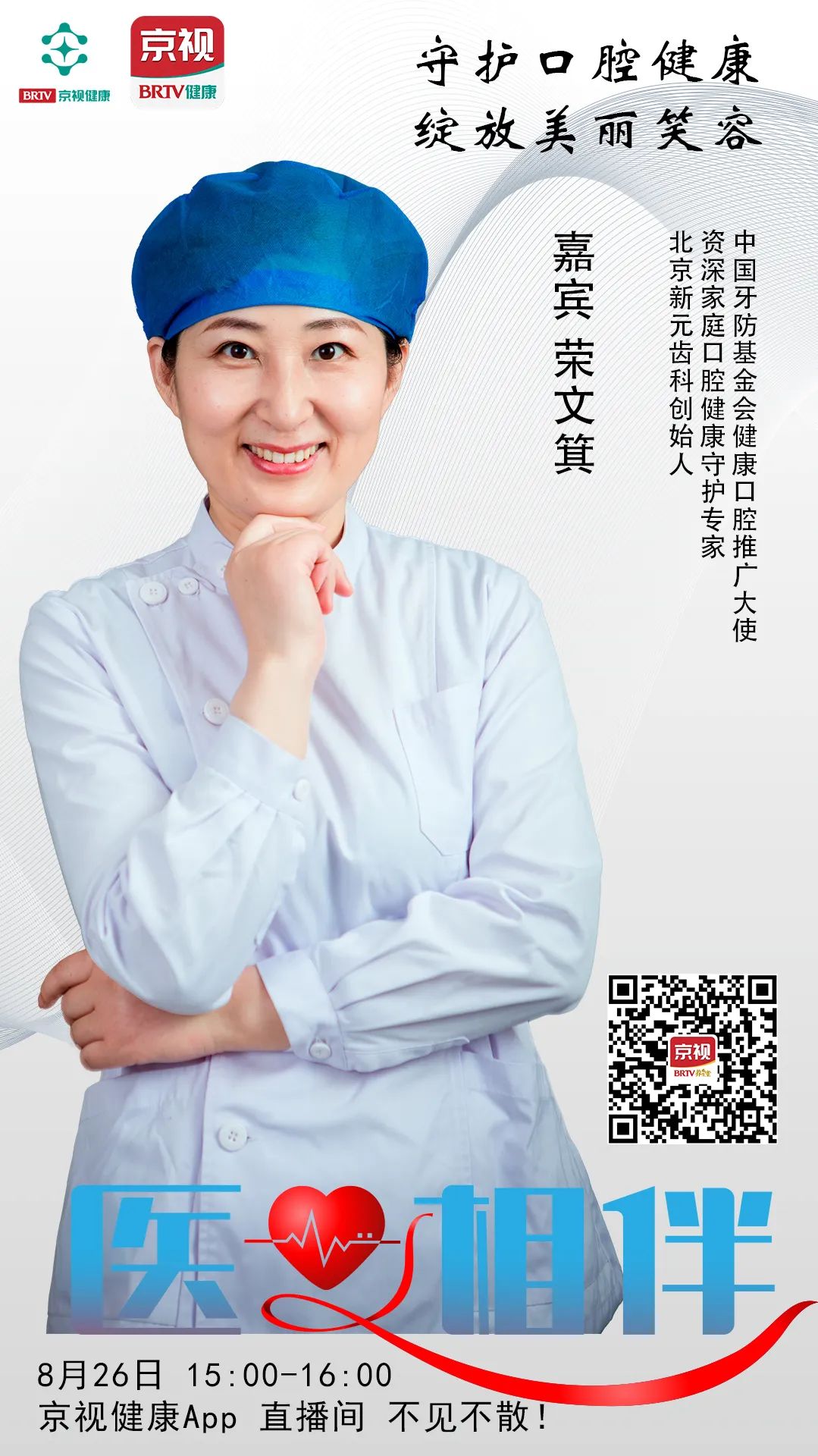 8月26日,听中国牙防基金会健康口腔推广大使荣文箕主任,给大家带来一场全年龄口腔健康的科普直播!