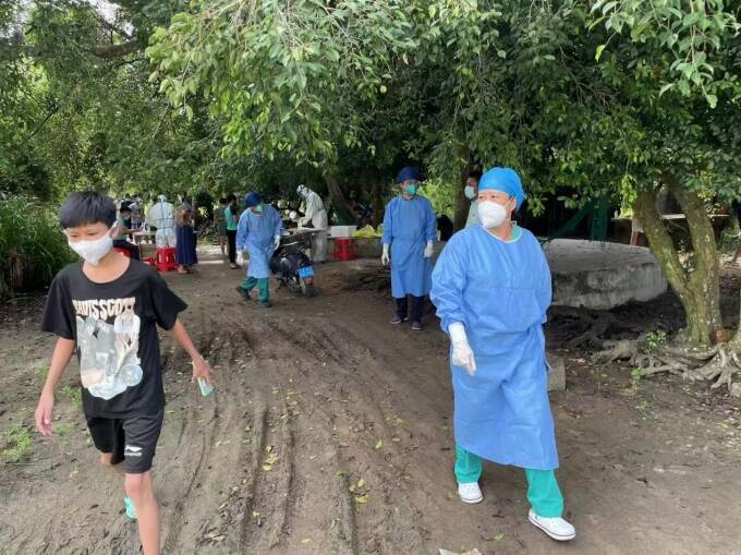 8月8日,抵达海南的第二天下午,我们就投入到了紧张的工作中。根据统一部署安排,我们临沂队负责白马井镇禾能村和福村的核酸采样工作,而这两个村都被划定为高风险区。那一天,正好台风来袭,暴雨如注,王帅华大姐就带领我们队员在雨中进行核酸采样,尽管天气不好、语言不通,但是在大姐的带领下,我们圆满地完成了当日的核酸采样工作任务,回到驻地的时候,已经是晚上十一点多。