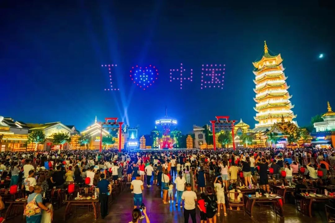 到了夜晚,主题活动欢乐多多,精彩演艺耀动全场……看令人震撼的火龙钢花、美轮美奂的无人机表演秀,还有传统与潮流相融合的国粹国潮秀,唯美大气。