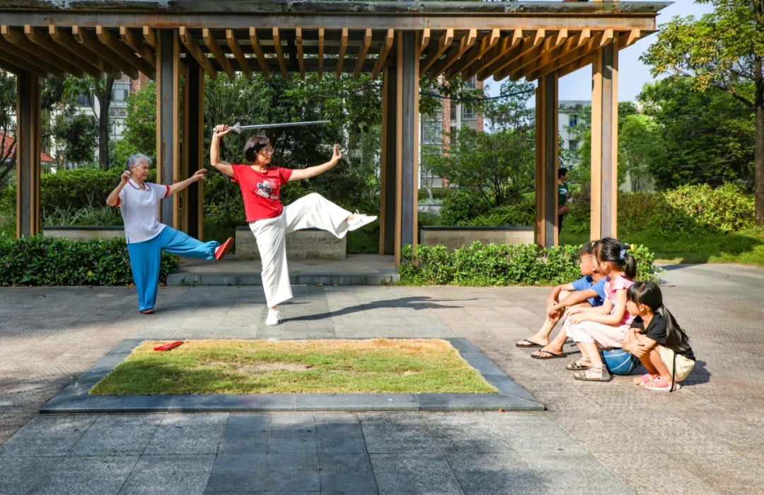 佛冈县石角镇某小区,居民在花园练太极锻炼身体。清远日报签约摄影师 卢小丽 摄