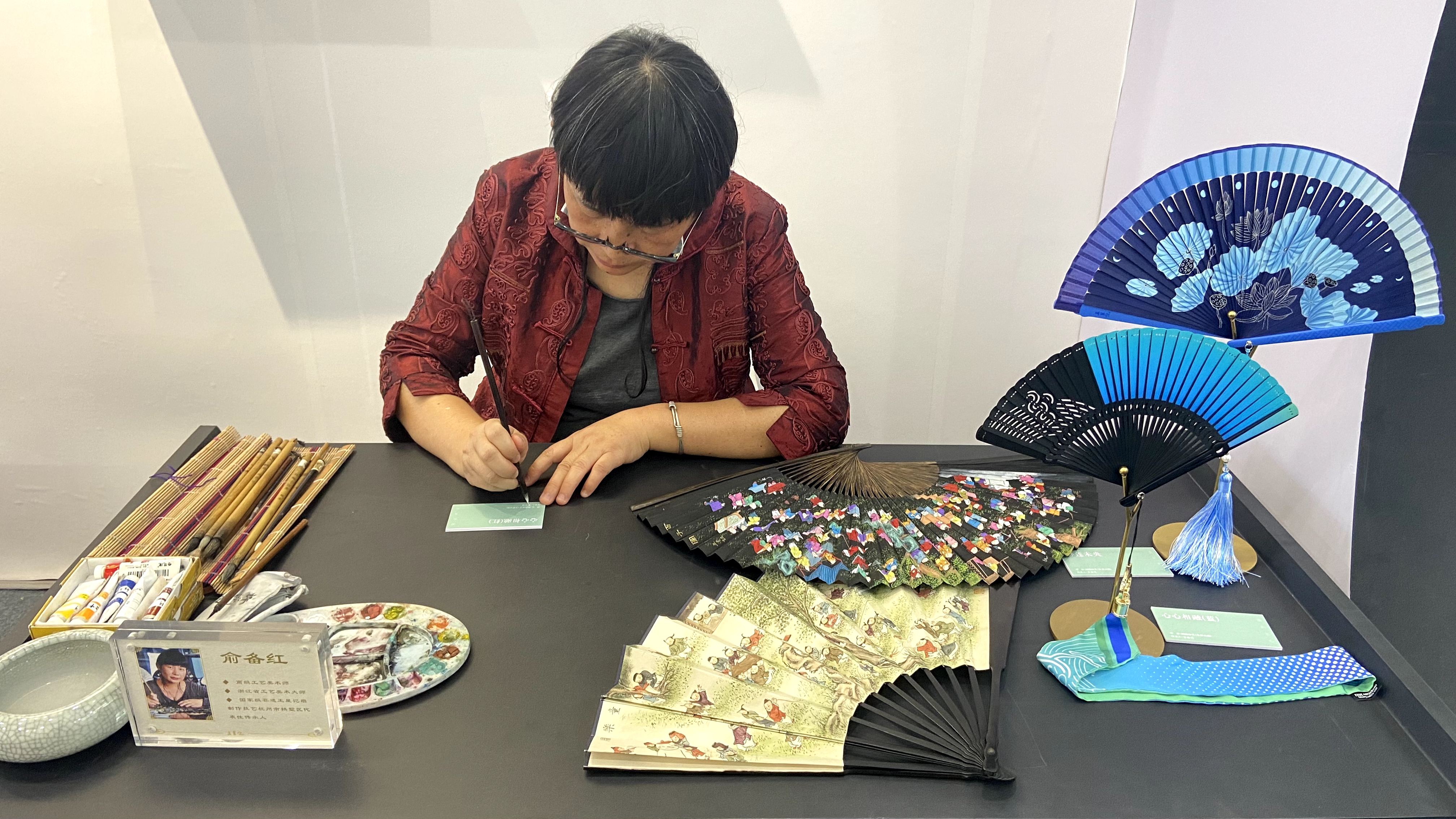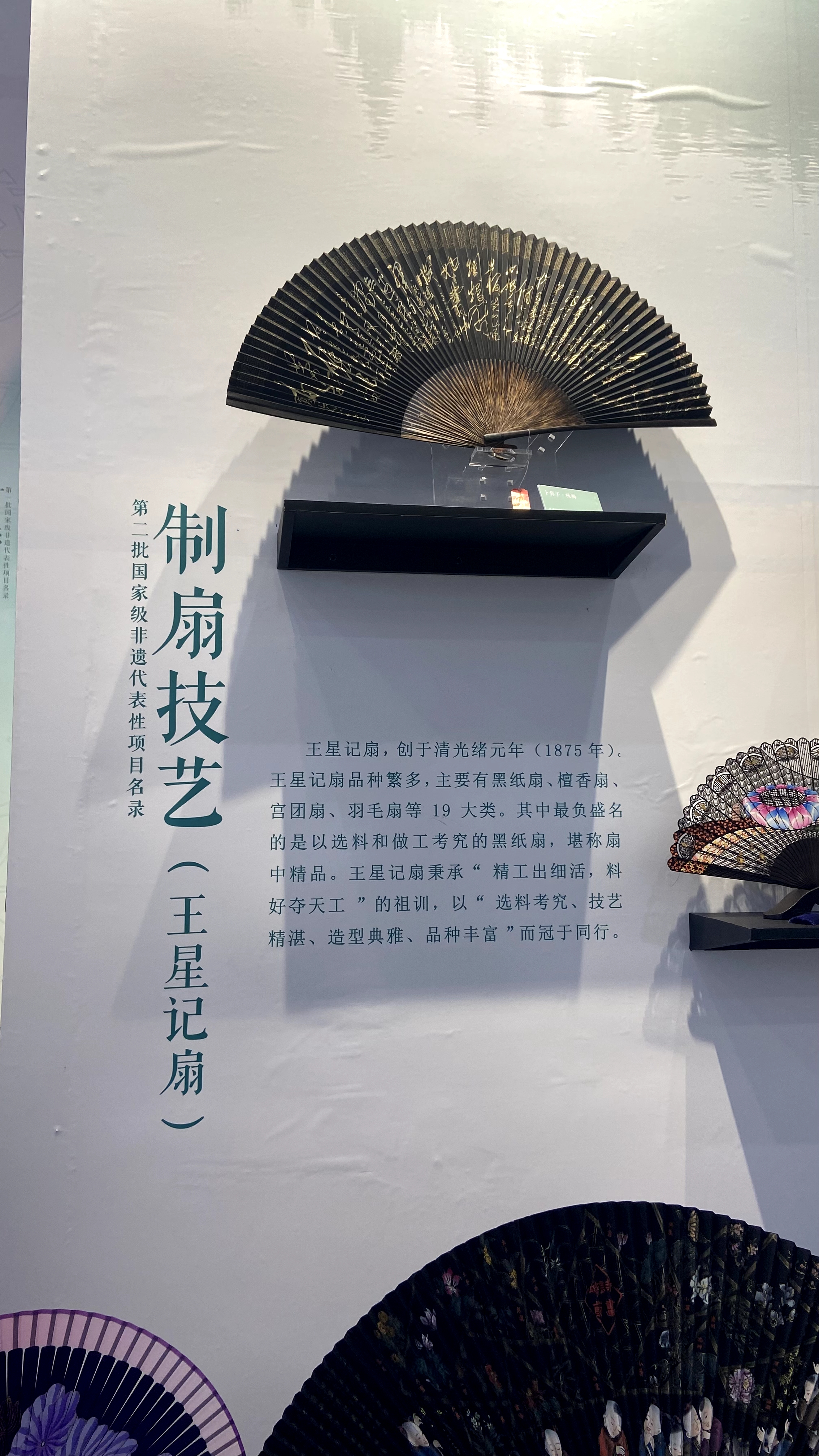 在第七届中国非物质文化遗产博览会的展位上,杭州王星记扇的高级工艺美术师俞备红从扇骨、扇头、扇面装饰、艺术特征等方面,为大家展示了王星记扇黑纸扇所蕴含的文化特色,让现场观众零距离了解传统技艺,深刻感受一把小小扇子所承载的民族文化。