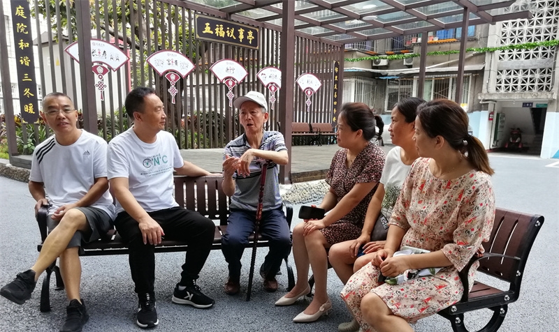 在五福家园有座漂亮大气的“五福议事亭”,亭子后壁上挂着“长寿福、富贵福、康宁福、好德福、善成福”的五福标结,祝福小区居民长寿安康、祥和宁静、富贵吉祥。军属喻兴清说:“小区改造好了,邻居关系也和谐了,即或有个家长里短,只要在五福议事亭摆上一阵,也就话明气散了”。