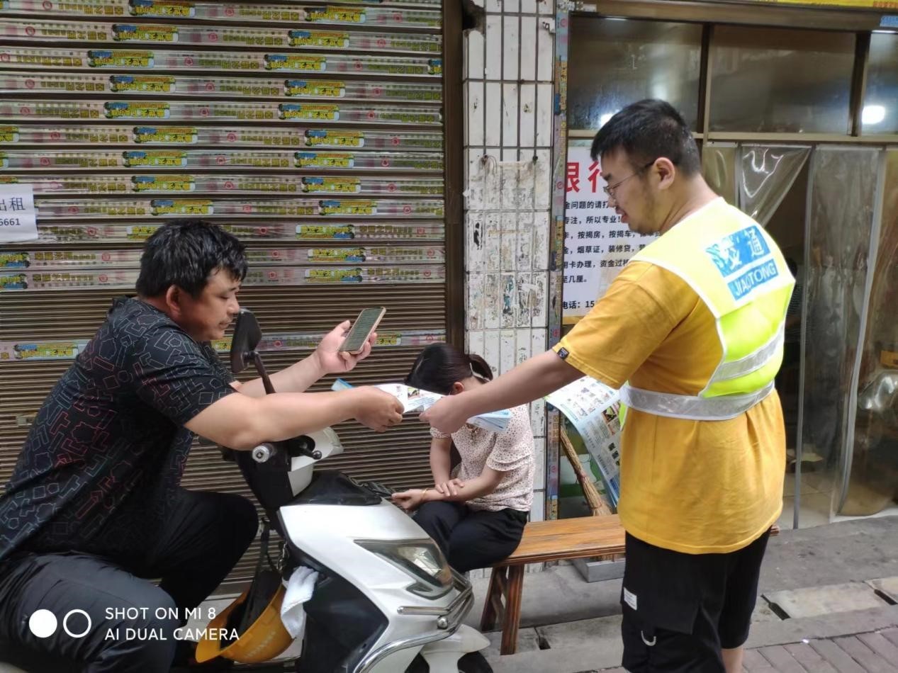 “您好,请收下这份交通安全宣传资料,同时请大家自觉把车停好,电动车不要占用人行道……”8月25日,大祥区红旗路街道工作人员在辖区进行交通知识宣讲,引导市民学习宣传资料内容。并提醒大家提高交通安全意识,遵守交通安全规则,注意平安出行、文明驾驶,养成良好的交通出行习惯。