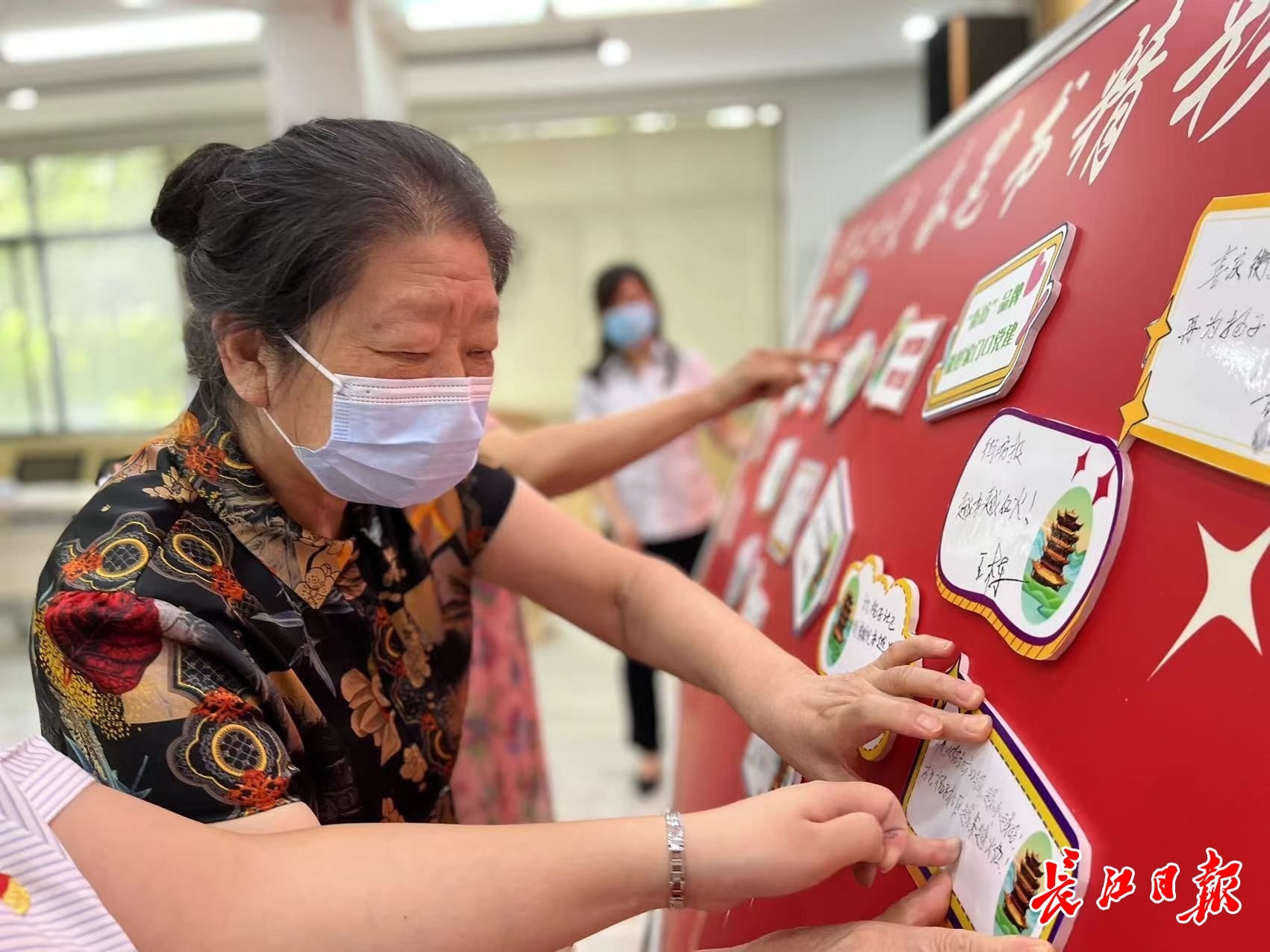 居民写下寄语,并贴上宣传板,《街坊》成了居民和社区沟通的桥梁。 记者刘晨玮 摄