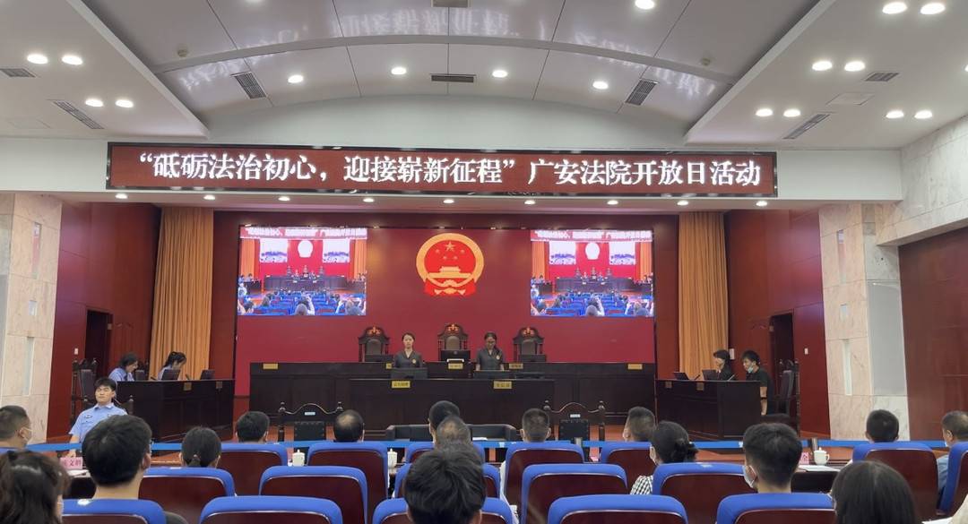这是广安市中级人民法院与广安市教育和体育局联合举办“砥砺法治初心·迎接崭新征程”法院开放日活动现场。今天,101名法学专业准大学生代表受邀来到法院,参加一场‘法治成人礼’、一场沉浸式的“模拟法庭”、一次法治初心的对话,踏上属于他们的“法治征程”。