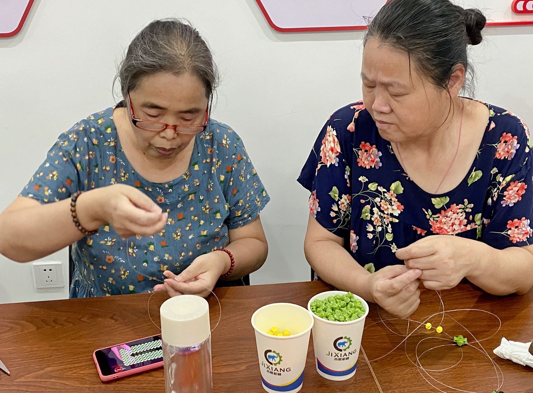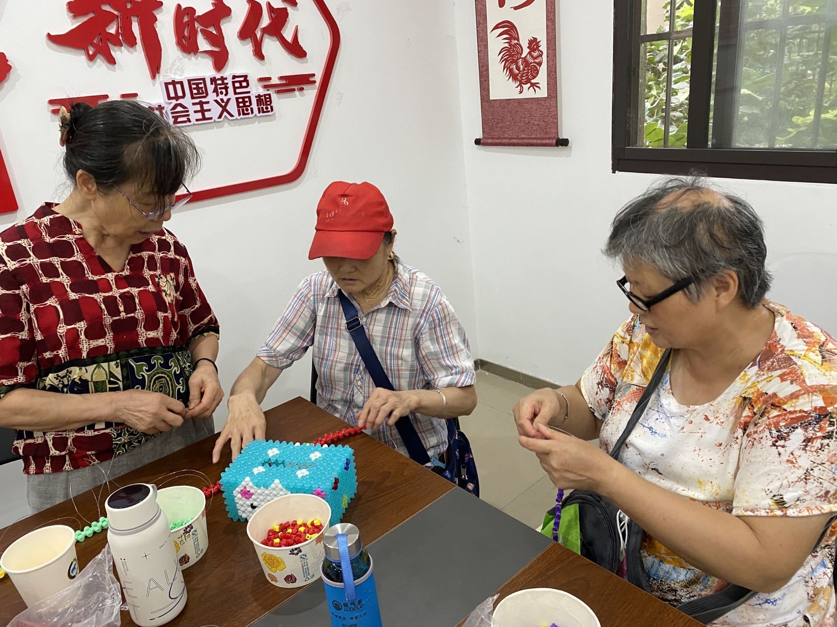 “妙手串珠,情暖夕阳”串珠课堂在为社区居民搭建一个交流兴趣爱好平台的同时,也希望为居民们增添生活乐趣,提升其快乐幸福指数。(文\郭芷含)