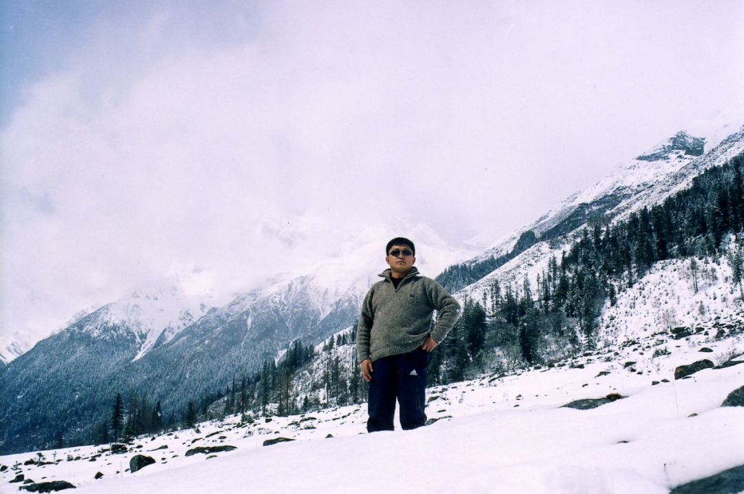 阿来年轻时摄于阿坝某处雪山