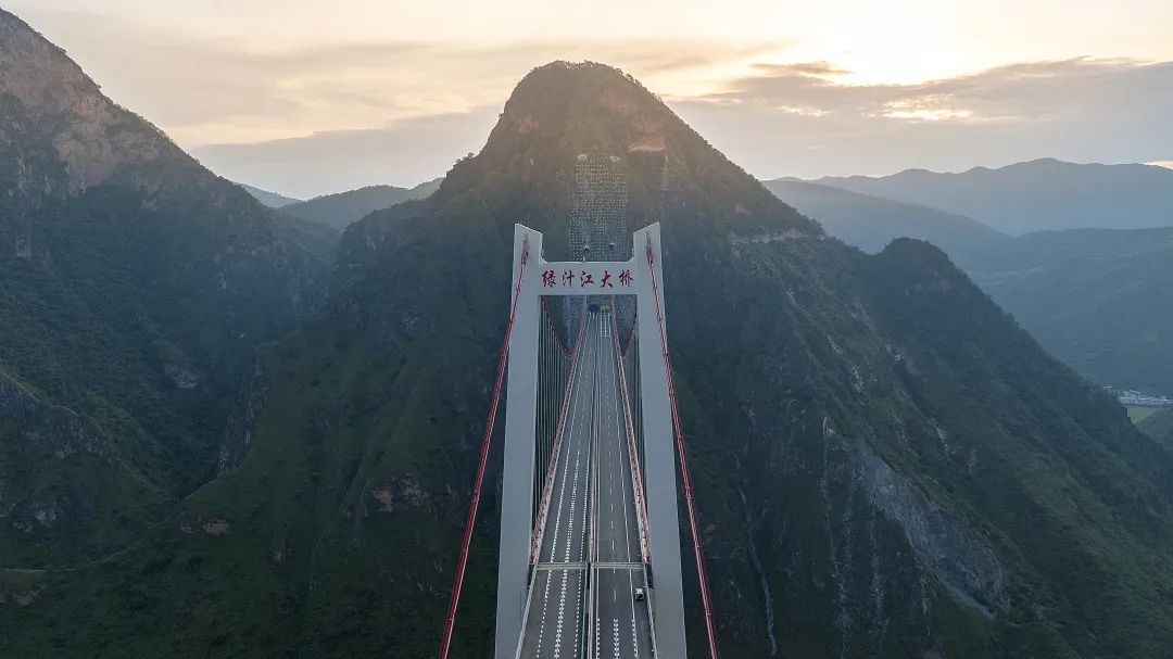 由中铁大桥局承建、中铁工业参建的绿汁江大桥全长798米,桥面为双向四车道,设计时速100公里,为玉楚高速的重点控制工程。大桥创下多项纪录:全国首座单塔单跨钢箱梁悬索桥、单塔单跨跨度最大的悬索桥(780米)、第一座单塔单跨钢箱梁悬索桥、悬索桥中隧道锚倾角最大(54°)。