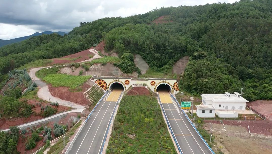 玉楚高速全线190余公里的建设跨度上,分散布局着45座隧道(单洞90座),中铁建工承担了全部隧道供配电、通风、消防等机电工程及洞内喷涂、洞门景观提升等隧道装饰工程,匠心独运打造“一隧一景”。