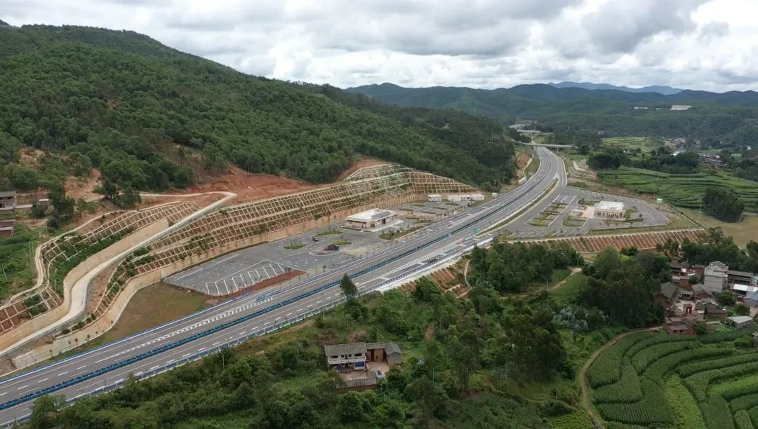 中铁建工将项目建筑风格融入当地民俗文化,紫溪山收费站采用彝族彩绘方式,易门南收费站应用马头墙及垂花仿古形式,石膏箐服务区以绿孔雀之乡为设计理念,黄草岭服务区彩色沥青、彩色铺装形成蘑菇形状,突出“菌乡易门”设计主题。此外,各服务区立足便民利民,设置了光伏新能源充电桩、儿童乐园、房车车位等配套便民设施,为旅客营造温馨便捷的旅途氛围。
