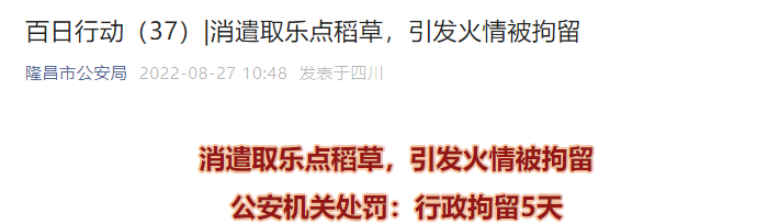 四川隆昌警方:一男子为消遣取乐点燃稻草引发火情,被行拘5天。
