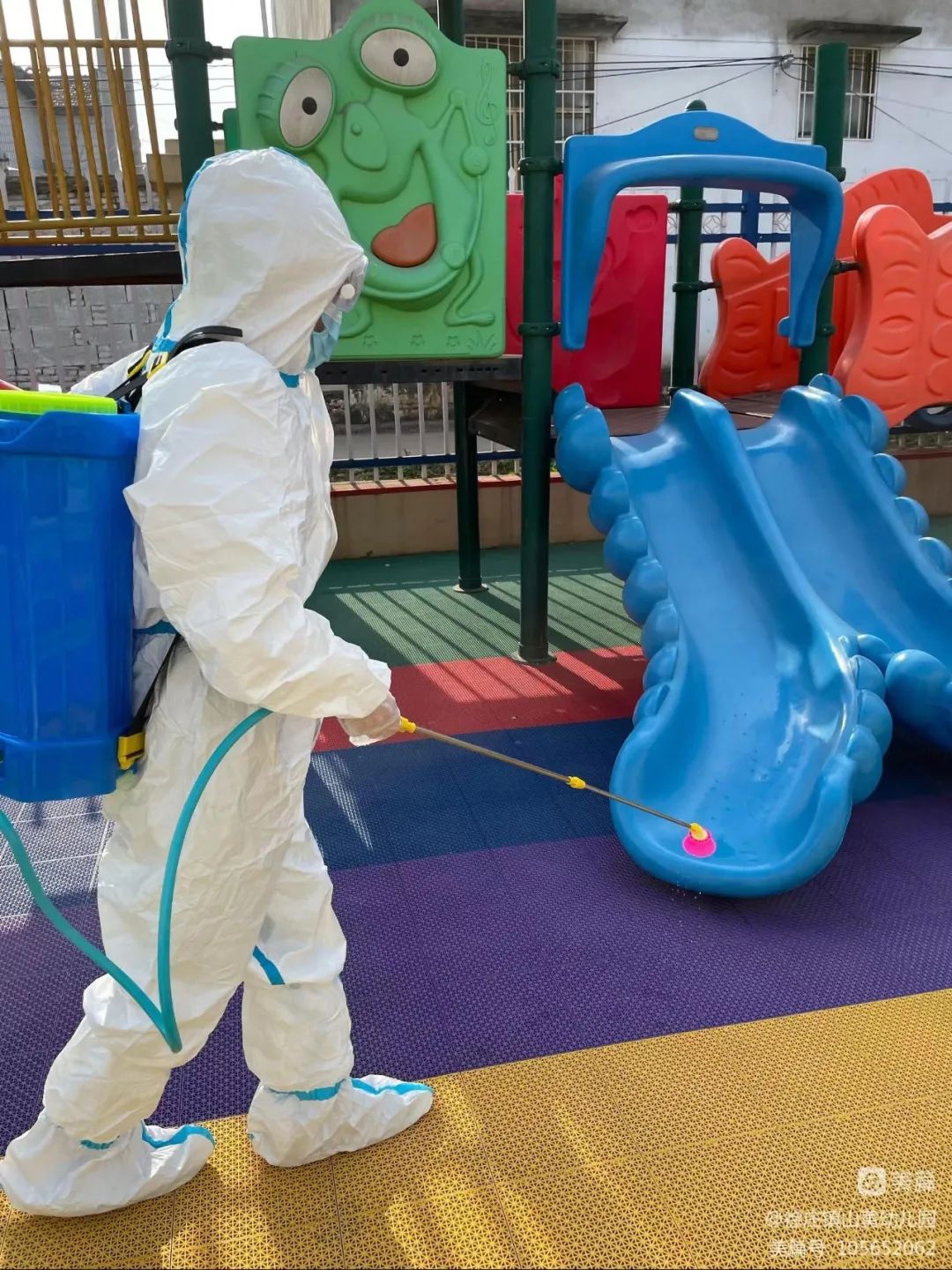 根据上级防疫要求,为保障幼儿园师生的安全和健康,要求教职工、幼儿、家长开学前进行风险地区排查,上交体温检测和健康承诺书,同时进行防疫演练,进一步明确开学报道流程。并组织人员对教室、活动室、桌椅、日常用品、室外游乐设施、厨房餐具等进行全面消杀,不放过任何一个死角,不留任何一个盲区,确保消杀到位,防疫措施落实到位,进一步筑牢疫情防控防线。