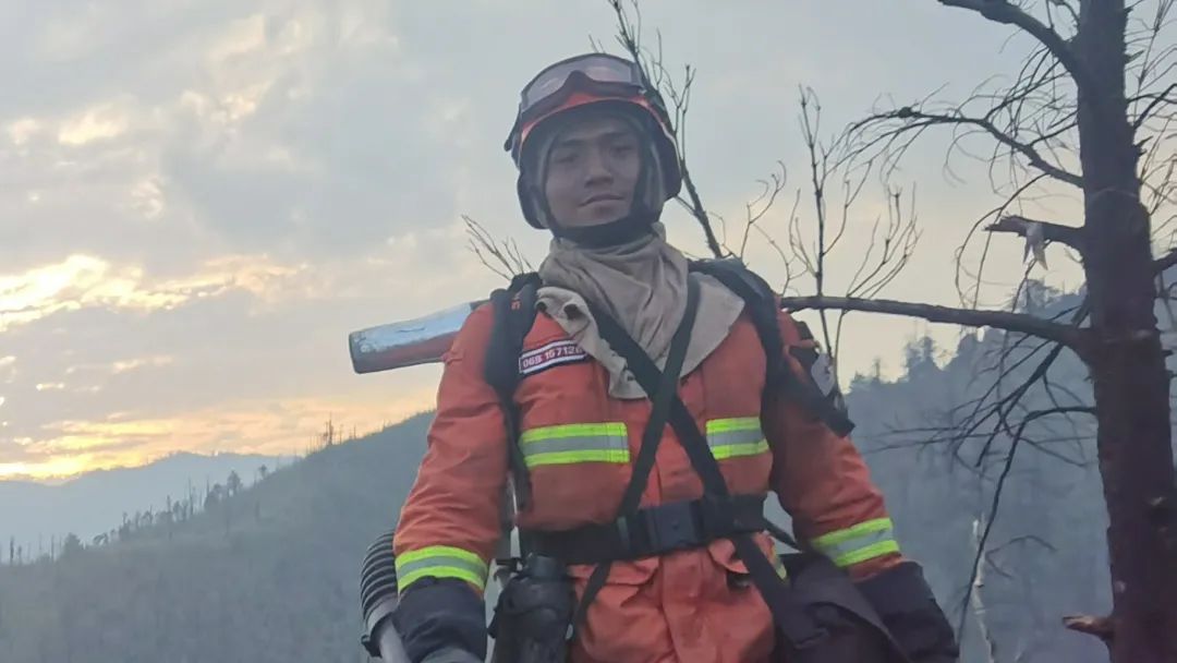 万子杰,今年20岁,2020年9月入职森林消防队伍,现在是云南森林消防总队大理支队大理中队的预备消防士。他在队伍里年龄最小,有着一张爱笑的娃娃脸,也因他父亲曾经是部队一名老兵,所以大家都爱调侃他:“00”后兵二代!这次增援重庆灭火,他第一个请求参加。经过跨越四个省区、机动15个小时,他直接投入到了长寿区万顺镇火场。重庆山陡,天气更热,灭火更是举步维艰。但他始终和队友们坚守灭火一线,背着30斤重的水带框和配件艰难前行,一路铺设管带把水输送到火头位置,给灭火带去“杀手锏”。经过连续灭火10余个小时,已经是午夜3点!大理中队担负的火线实现全线扑灭,他才歇下来吃一口饭。当配合队伍灭火的重庆老乡问他灭火苦不苦、家人担不担心,他坦言:作为森林消防员,是离火最近的人,热浪袭人,打在人脸上有灼痛的感觉,加上山形陡峭,爬起来更加困难,很快就是满身是汗。这次跨区增援没告诉父母,这些苦累更不想告诉他们,怕他们担心,自己始终坚持下来!他说,让他感动的是,老乡们都努力送冰给一线降温解暑,很多志愿者爬着崎岖的山路,用背篼装着冰块、冰镇饮料等,直接送到他们手上来,重庆人很热情,希望火灭后能吃一顿重庆火锅。