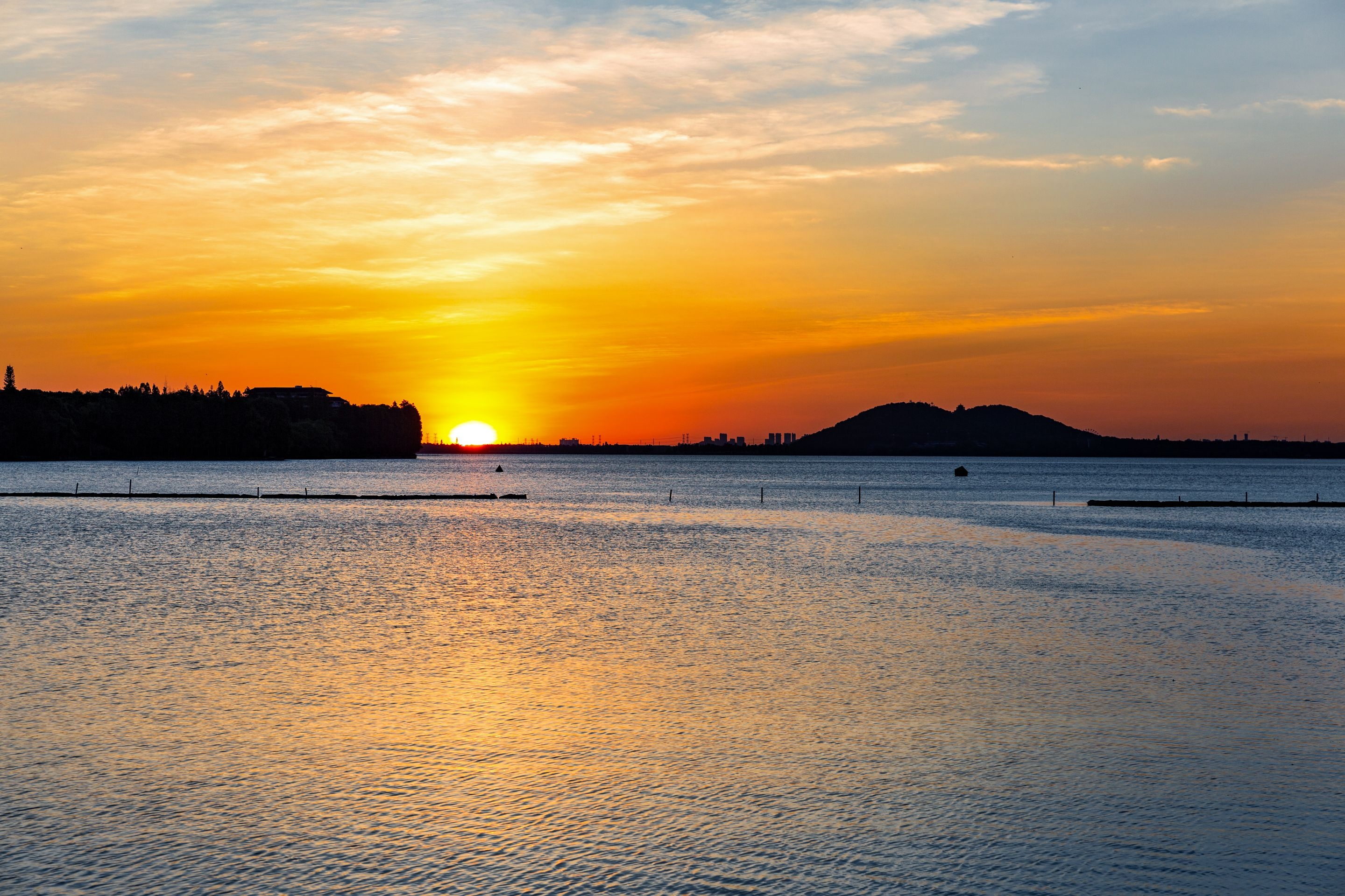 看暮日沉江、碎金点点
