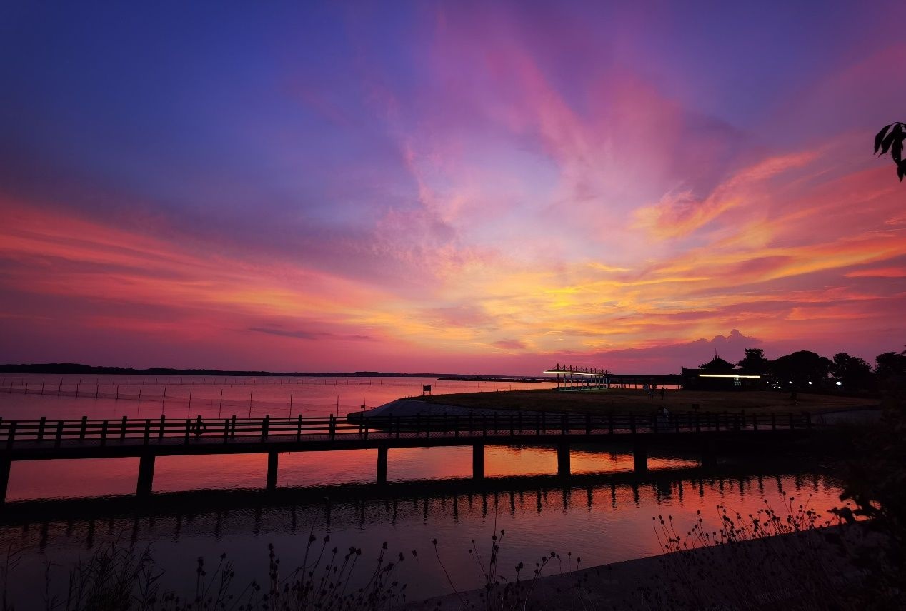 梁子湖,晚霞真是美炸了。城市摄影队@明月他乡