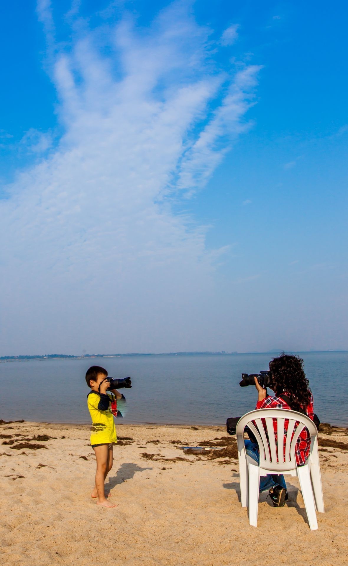 《对拍》今天是世界摄影日,发一张梁子湖畔抓拍作品,以示纪念!城市摄影队@韩昶光