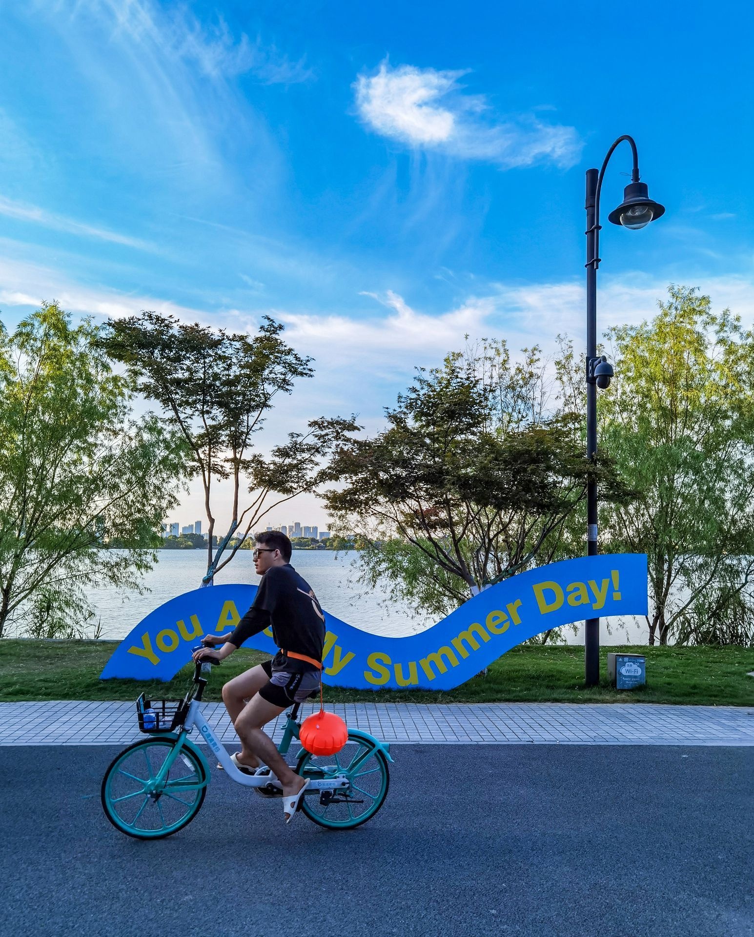 骑着单车慢行