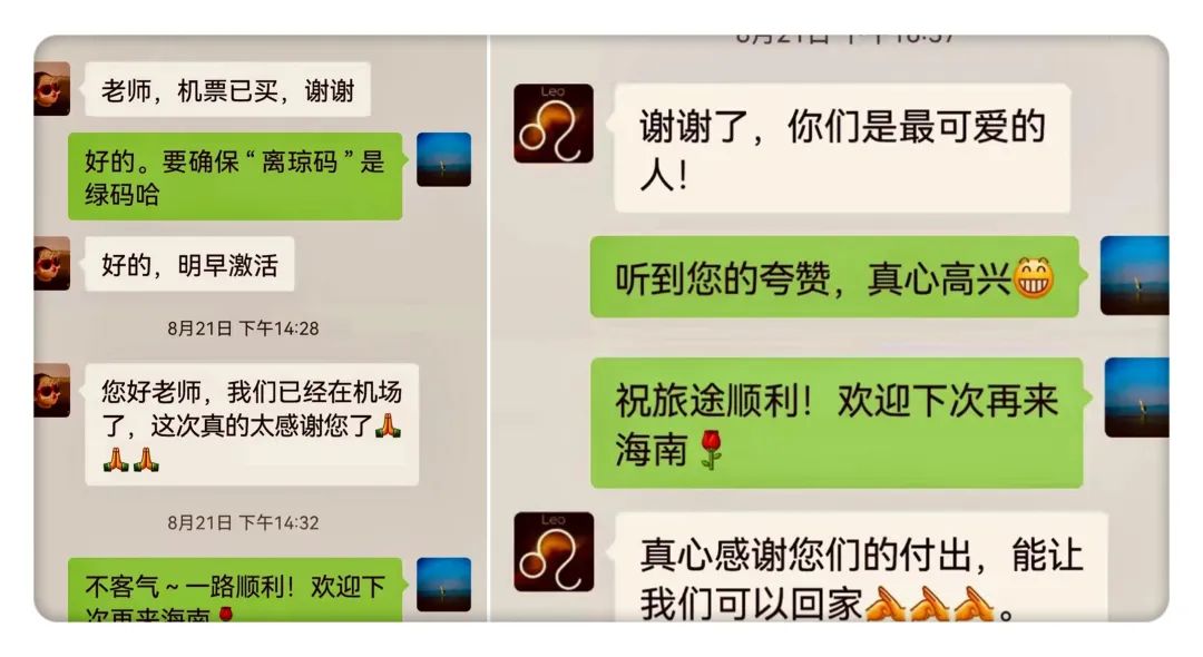 8月19日,返程迎来转机。当日一早,刘先生接到专班工作人员电话:“我们通过离琼码了解到您的返程需求,因为青海旅客较少,航空公司尚未开通直飞航班。我们来想办法为滞留在海南的青海旅客攒一个团,一定努力让您和家人尽快回家。”