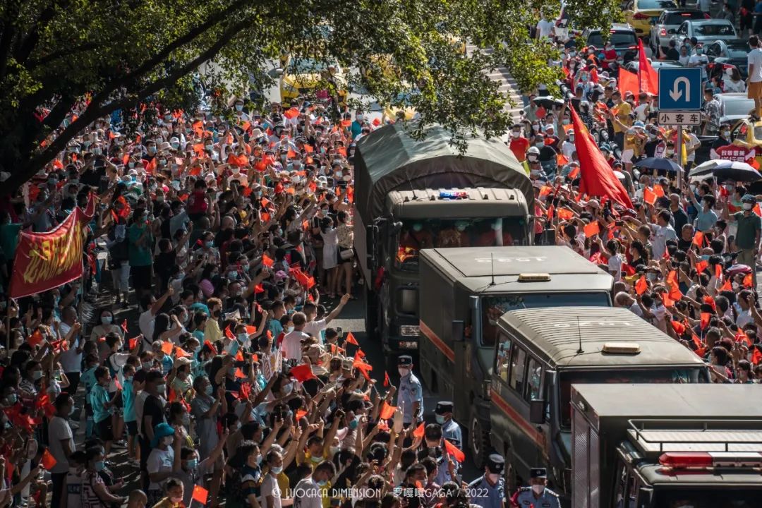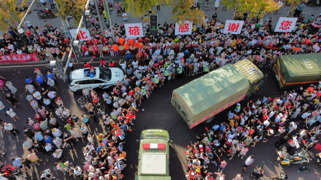 大家夹道欢送这群可爱的人