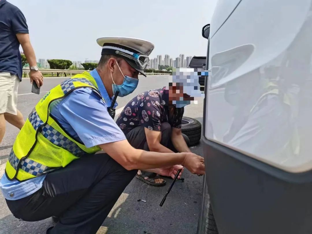 民警帮其将车辆移至安全区域,做好安全防护后,从警车上取出扳手等工具, 十几分钟就帮其更换好轮胎。民警提示驾驶员以后长途出行前一定要记得检修更换轮胎,驾驶员对民警的暖心帮助表示感谢。