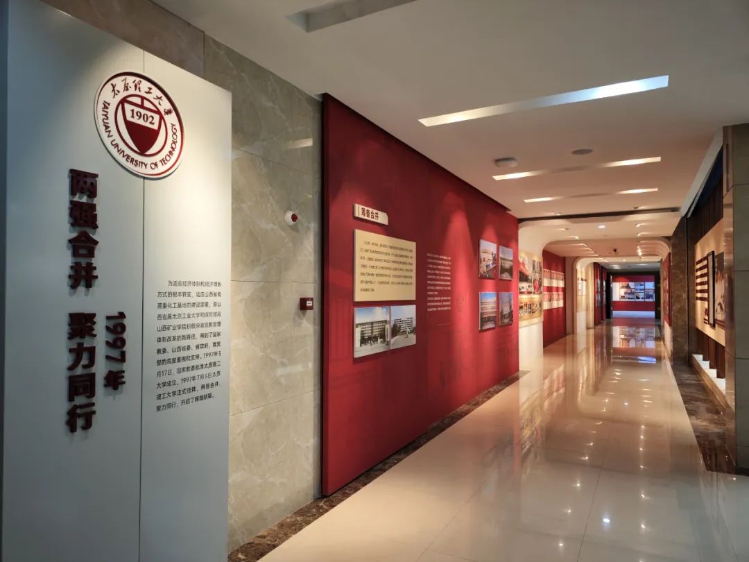 新校史馆占地面积约1040平方米,围绕“太原理工大学从何而来?今生今世走过什么样的历程?能立足三晋靠的是什么?昭告天下的骄傲所在?面向未来充满信心的美好愿景何在?”一一展开,由两大展厅、七个部分组成,共选用照片630余张,使用电子显示屏等多媒体设备13处,制作收集雕塑油画等展品8件、陈列实物150余件,通过50多个主题版面再现了一代代太原理工人自强不息、艰苦奋斗的历程,展示了学校办学的骄人成就和未来发展的美好愿景,突显了学校在不同历史时期为党和国家高等教育事业所做出的卓越贡献和取得的丰硕成果。