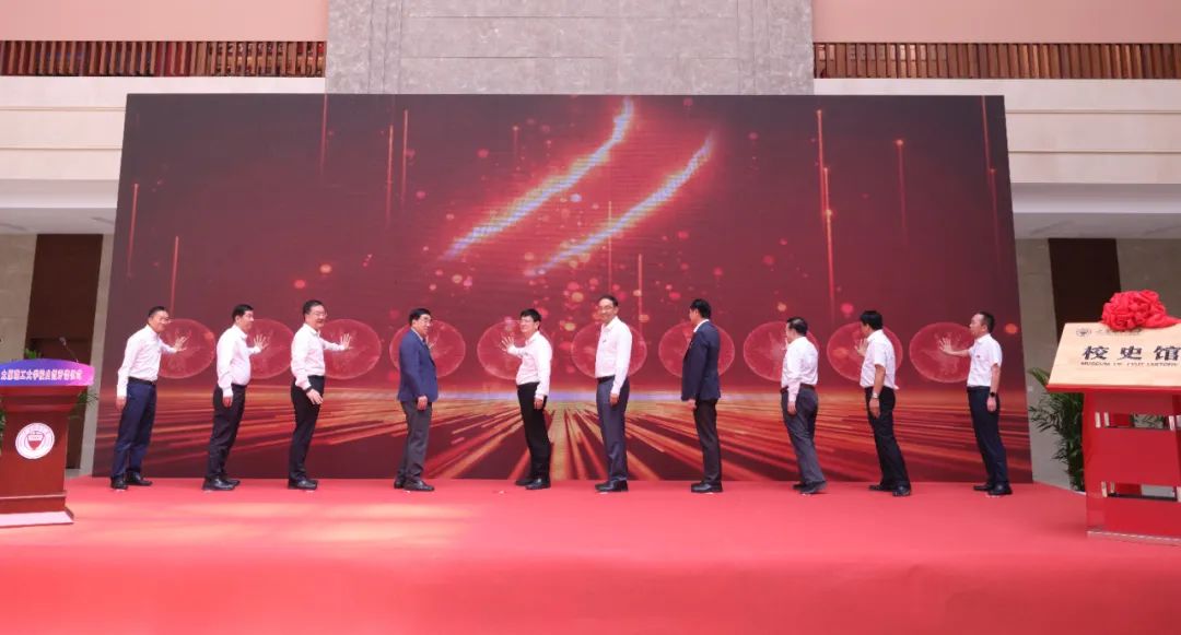 在全场嘉宾的见证下,在校的校领导和嘉宾共同启动校史展,激动人心的一刻在全体理工人心中定格。随后,在讲解员的带引下,领导、嘉宾、师生、校友们参观了校史馆。