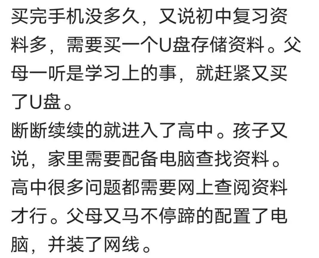 他说道,从初中起,朋友家孩子开始向父母不断提要求,最开始想要一部手机。