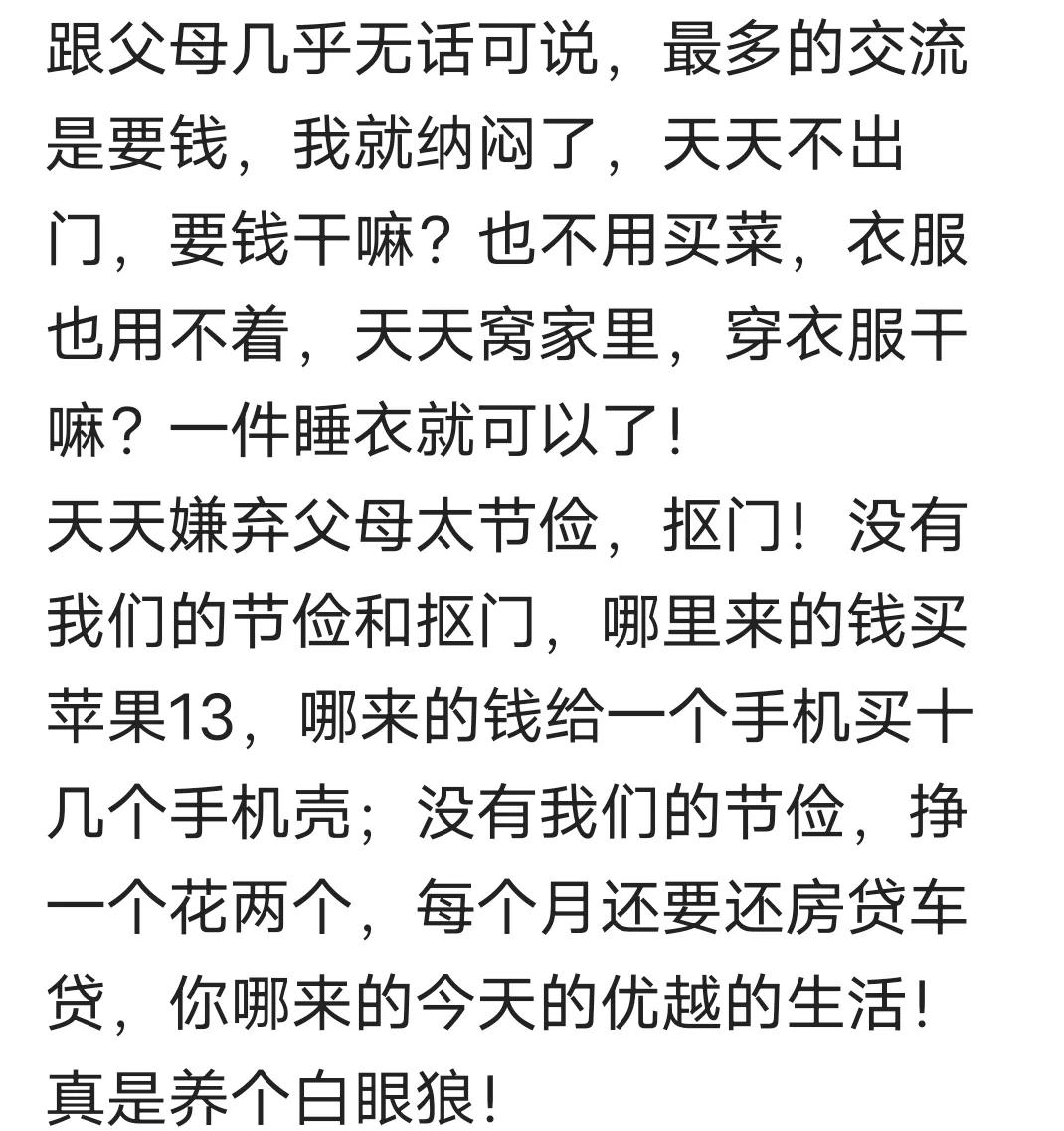 平时一句话没有,只有要钱了才会跟父母说上一声,不给就抱怨父母太抠门。