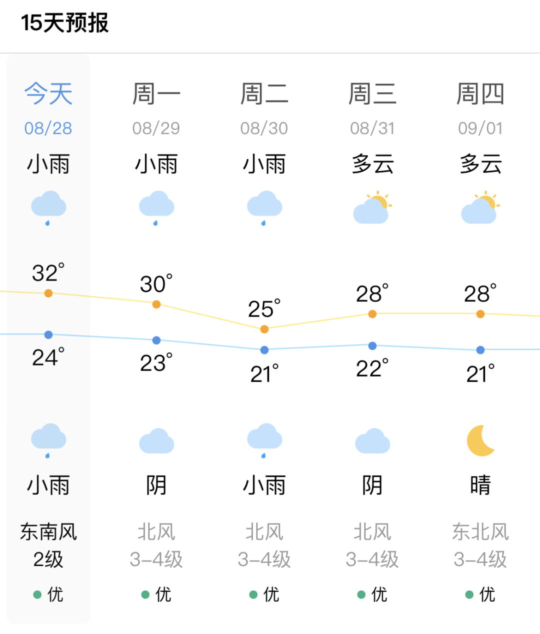 市气象局消息,预计未来七天杭州多阵雨、雷雨天气。8月的最后两天,新一波冷空气将影响杭州,天气变凉,我们离秋天还远吗?