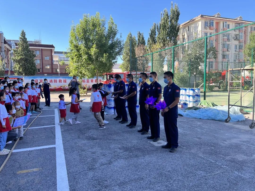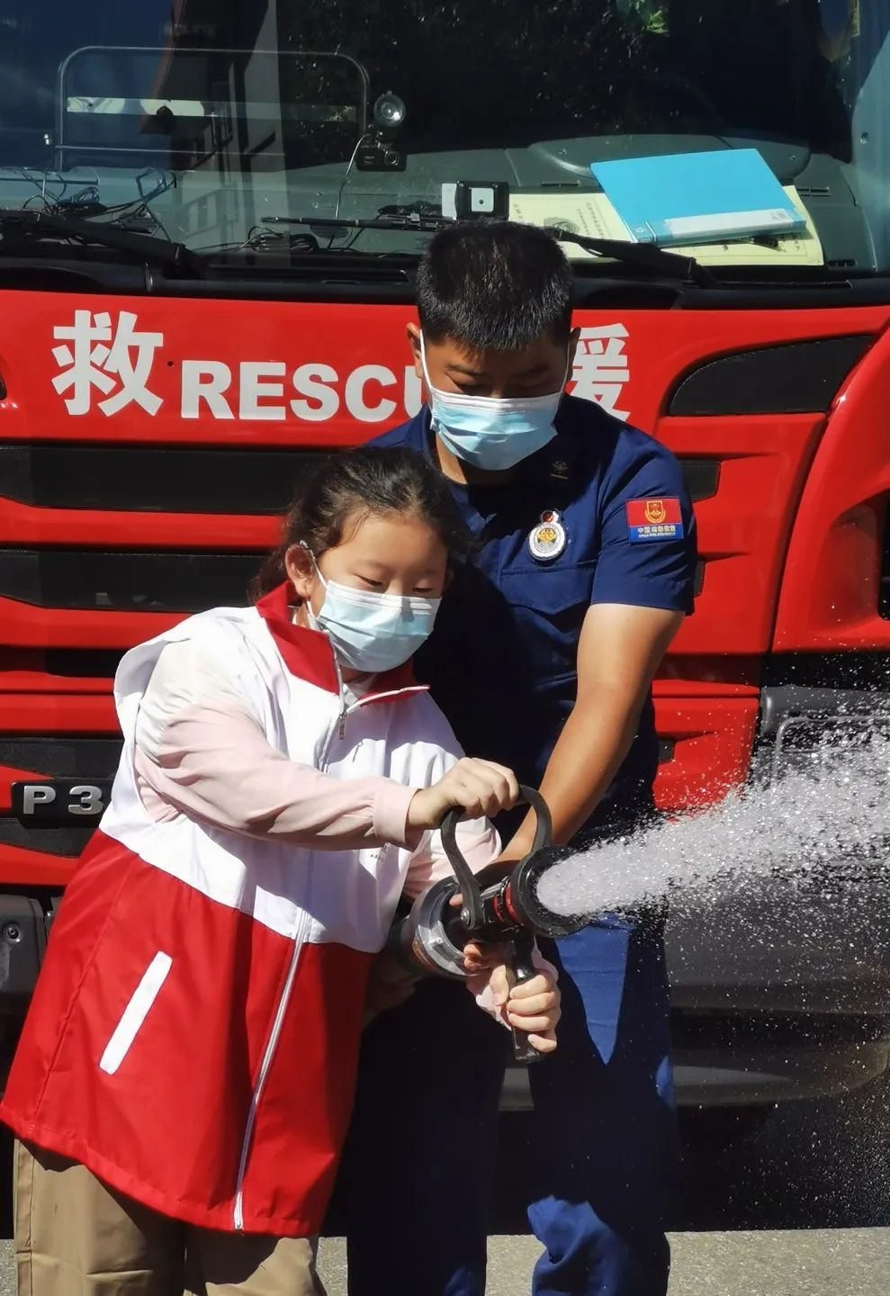活动中,志愿者们还穿上消防服,佩戴上沉重的装备切身体验了消防官兵的艰辛,最后小志愿者们将自己亲手制作的小礼物送给心目中的"浴火英雄"们,向他们表达深深的敬意。