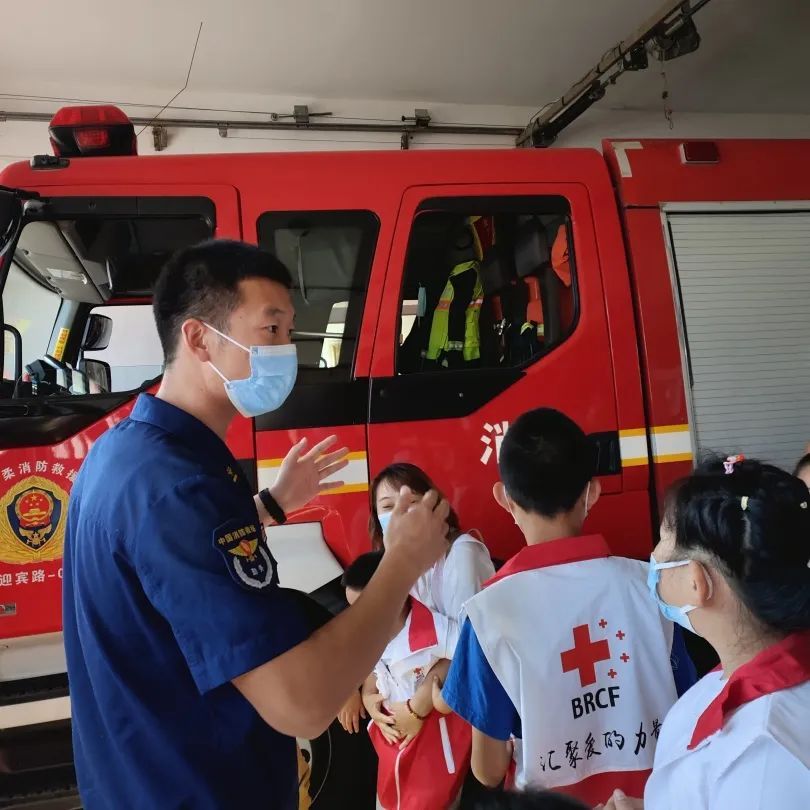 8月27日上午,北京市红十字基金会乐贝家志愿服务队的青少年志愿者在沈丽队长的带领下,走进了怀柔区消防救援支队迎宾路救援站参观学习。