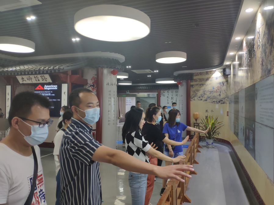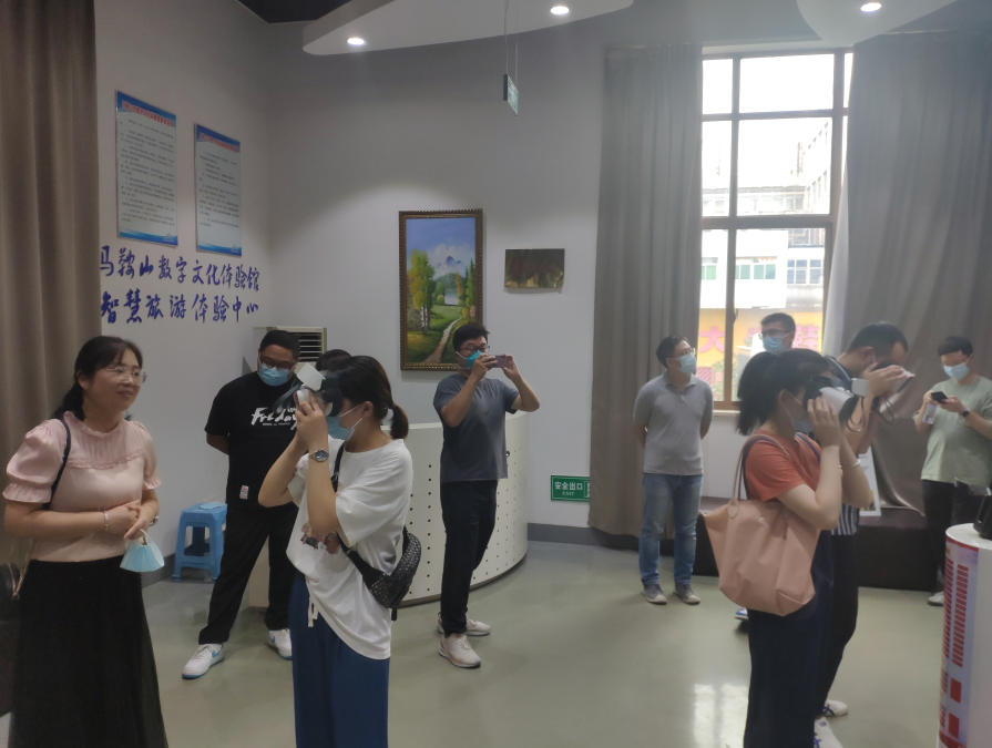 在马鞍山市文化馆考察期间, 考察团首先来到数字文化体验馆(智慧旅游体验中心),先后参观了“VR智慧党建展示厅”“渊源流传”“诗城漫步”“超级主角”“指尖天籁”“美丽中国VR游”等展区,观摩数字化展示项目的同时,听取了马鞍山市开展数字文化馆建设情况的经验介绍并给予了高度赞扬。随后,大家来到非遗展示厅观摩实物陈列展览,表示希望加强馆际交流,共同推动两地公共文化服务和数字文化馆建设进一步创新出彩。