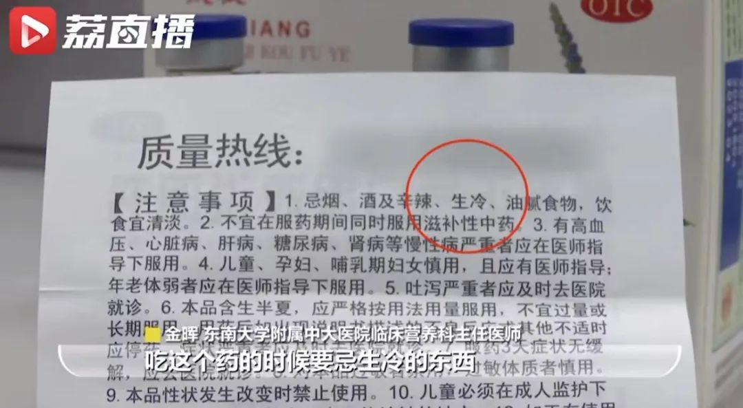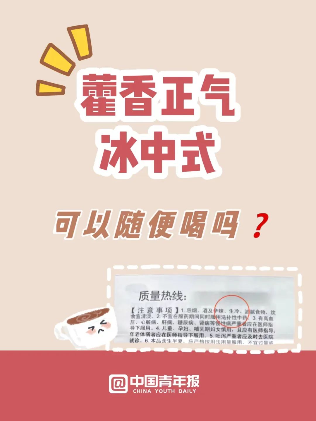 东南大学附属中大医院临床营养科主任医师金晖提醒:①藿香正气液等是中成药,服用时应忌生冷;②药品不能代替饮品,剂量超标或引起不良反应。