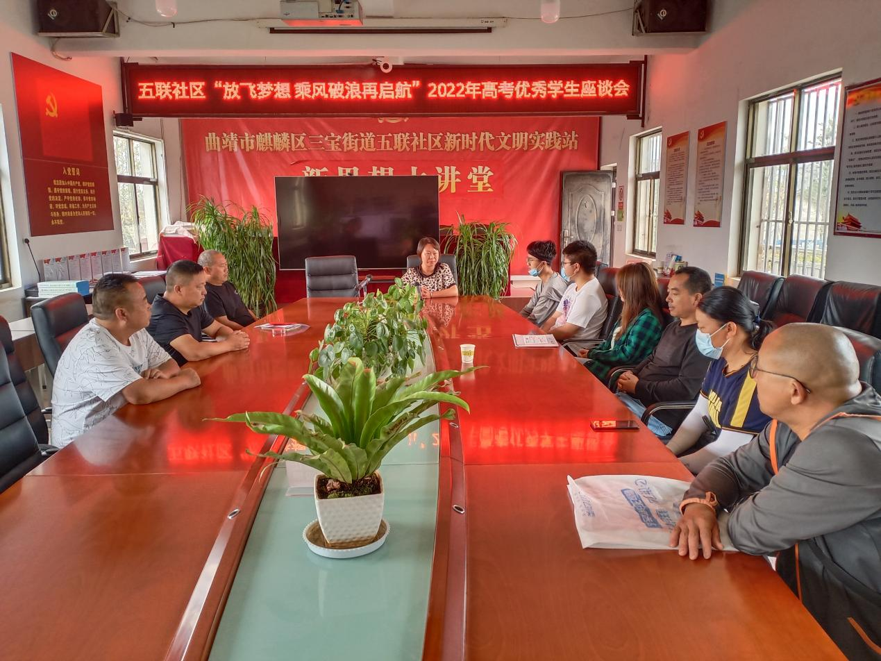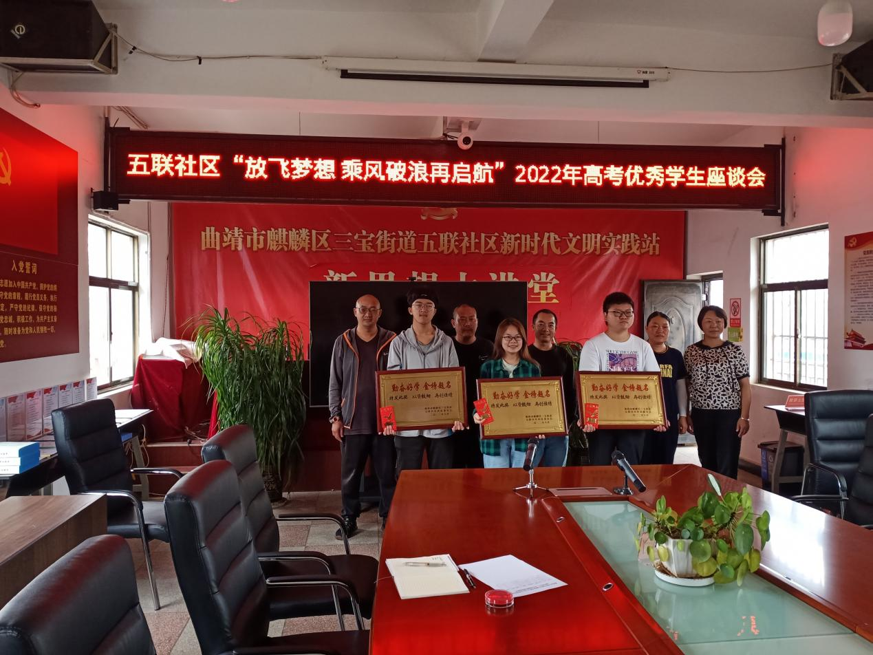 青少年是国家的希望和民族的未来,为进一步激发广大学子的学习热情,树立勤奋学习,不断进取、积极向上的精神风貌,近日,五联社区举行“放飞梦想,乘风破浪再启航”暨2022年高考成绩优秀学生座谈会,对今年高考取得优异成绩的3名优秀学生进行表彰,共同见证和分享学子们梦想绽放的喜悦和幸福,并发放了3000元奖励金。