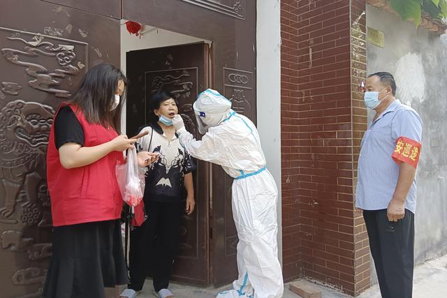 在8月6日当天,镇卫生院22岁的王玉洁在吴堂新区全民核酸检测中热晕了三次。院领导要找人替换,她休息几分钟,喝了一瓶冰镇矿泉水,又执意返回岗位,强忍难受,直到为最后一个村民核酸采集结束。