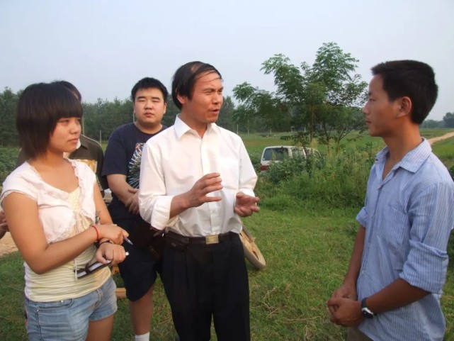 2007年8月12日,喻友旺与志愿者一起在麻城农村走访贫困学子。揭兴旺 摄