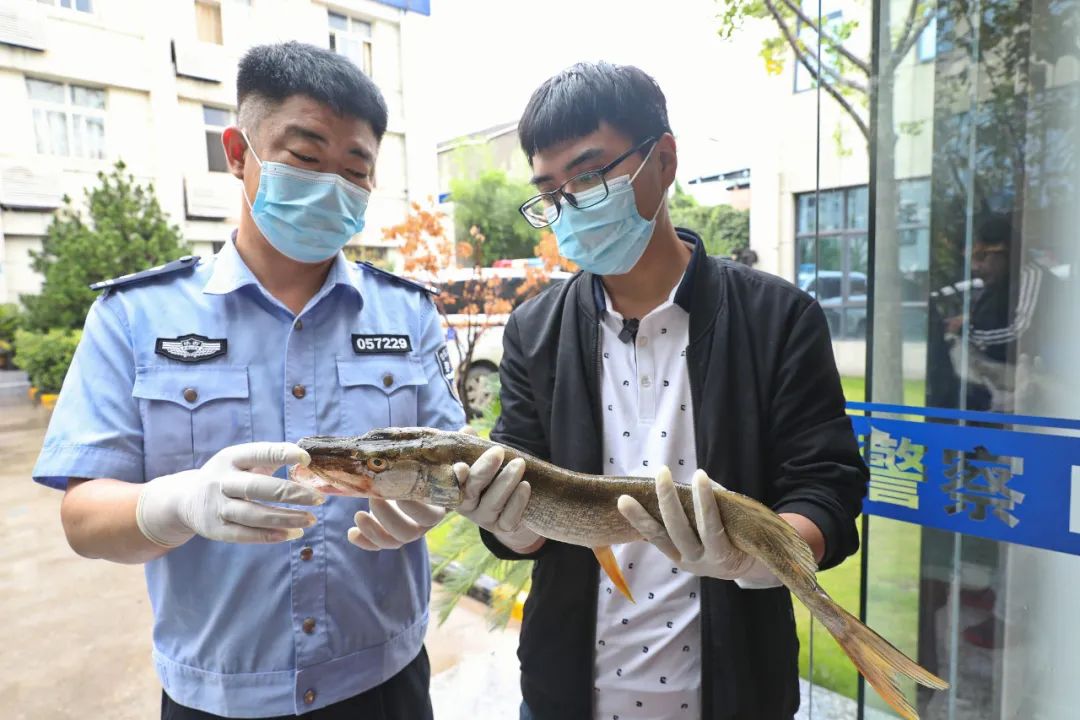 8月28日23时许,西咸新区公安机关接到群众报警称,在昆明池入水口沣惠渠中意外发现一条疑似“鳄雀鳝”的“怪鱼”,联想到近期我国多地发现这种危害性极大的外来物种,镐京大道派出所值班民警第一时间到达现场,将这条有着鸭嘴一般的“怪鱼”带回派出所,并联系当地农业部门进行鉴定。